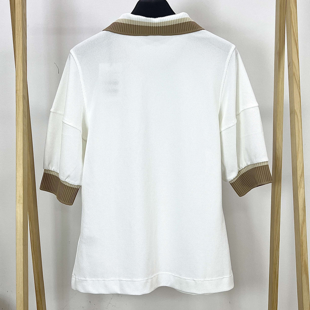 [행복한백화점][파사디]카라 배색 포인트 5부 소매 요꼬 티셔츠 화이트 여성 P24MTT174M