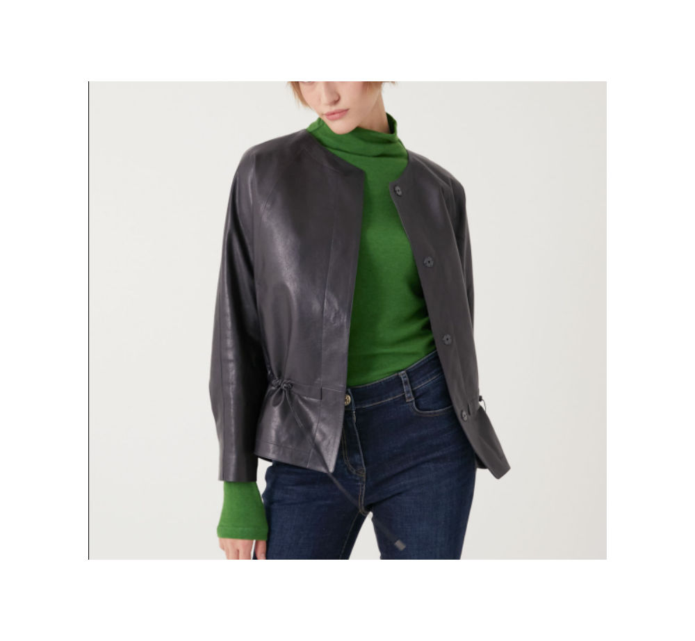 라운드넥의 리얼 양가죽 자켓으로 허리내부에 드로우 스트링이 있어 슬림한 라인을 강조해 주며