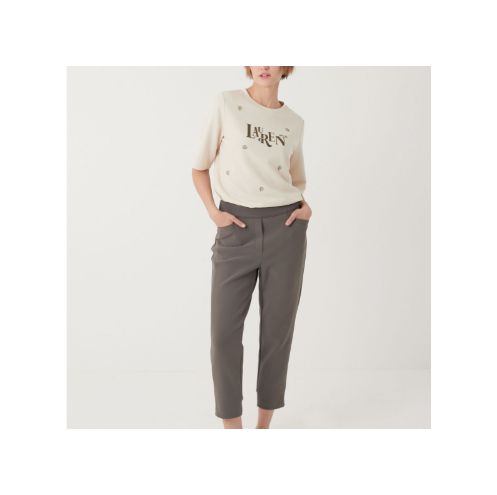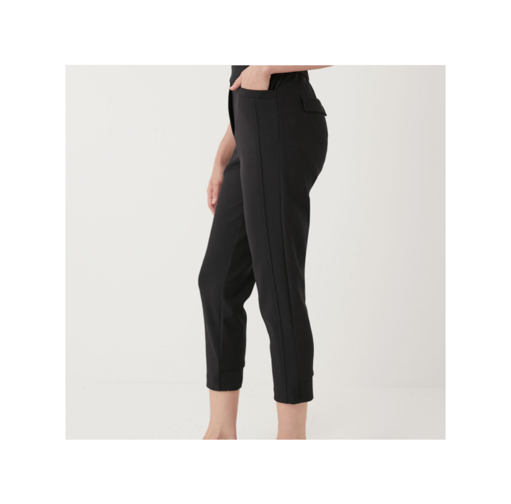텐션이 좋은 소재감의 앞 오비쪽과 밑단쪽 니트 시보리로 포인트를 준 배기팬츠 입니다