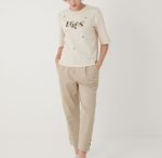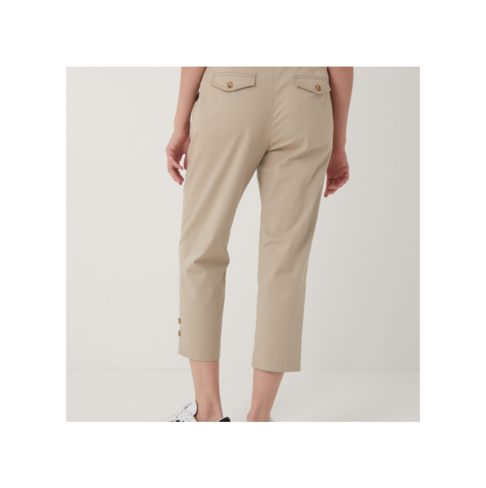 앞 턱으로 활동분량을 주며 밑단으로 갈수록 좁아지는 편안한 실루엣의 배기팬츠입니다