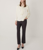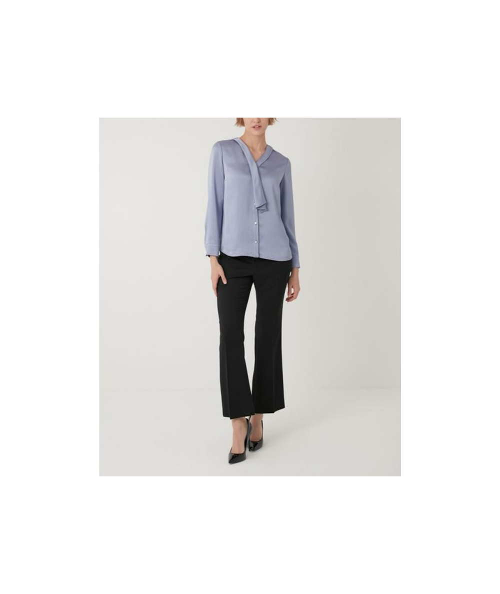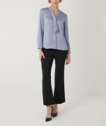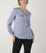 은은한 광택에 매력적인 사틴소재의 기본핏 타이 블라우스 입니다