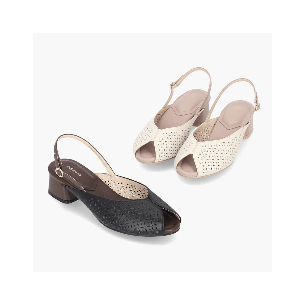 [행복한백화점][엘칸토]여성 양가죽 펀칭 슬링백 샌들 4cm LCWW47 >