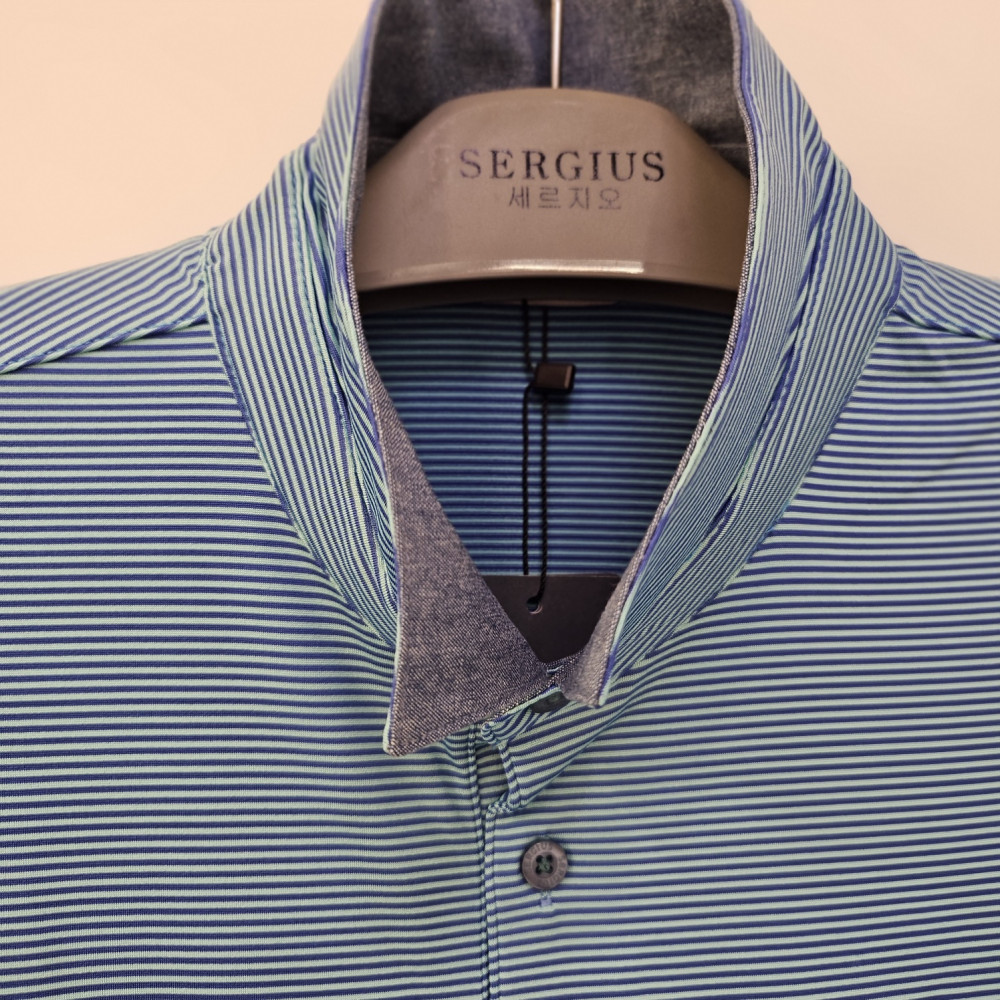 [행복한백화점][세르지오]에리 우븐 배색 블루 긴팔 티셔츠 stsdkmh 3701