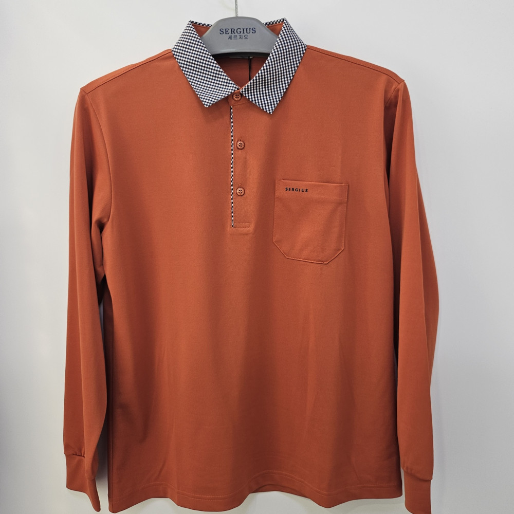 [행복한백화점][세르지오] 체크 에리 우븐 배색 긴필 티셔츠 stsdkmh3522
