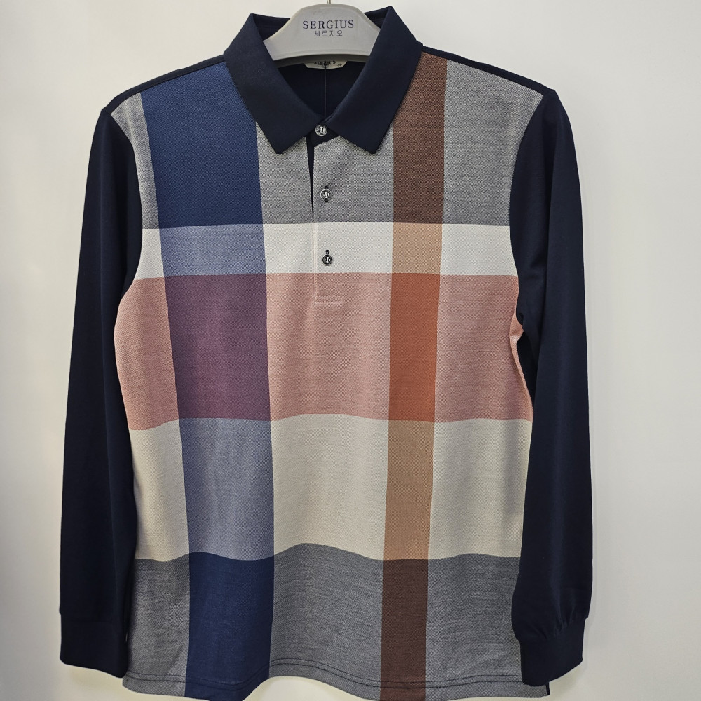 [행복한백화점][세르지오] 선염 닥스 빅체크 면혼방 가을 긴팔 티셔츠 stsdkmf3702