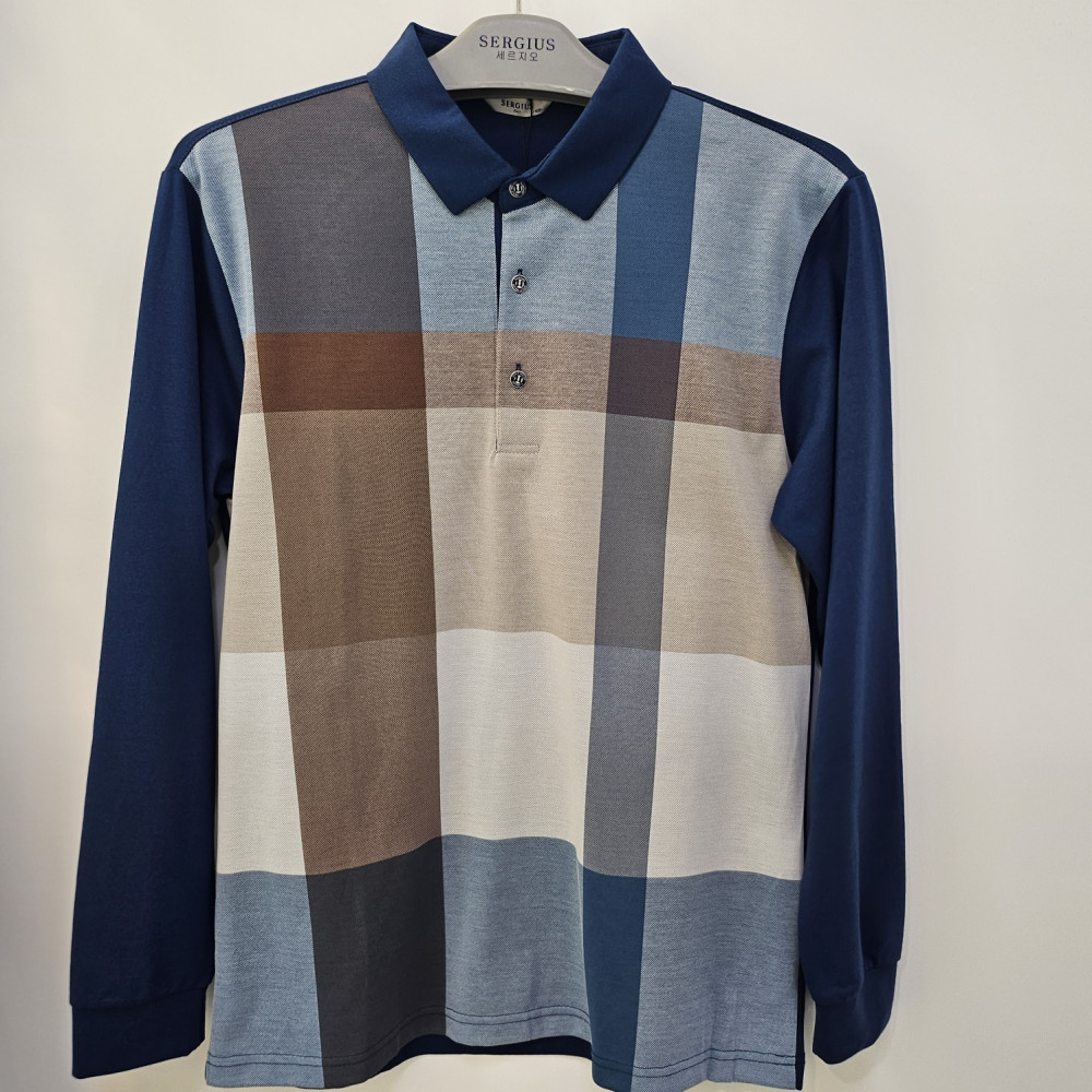[행복한백화점][세르지오] 선염 닥스 빅체크 면혼방 가을 긴팔 티셔츠 stsdkmf3702