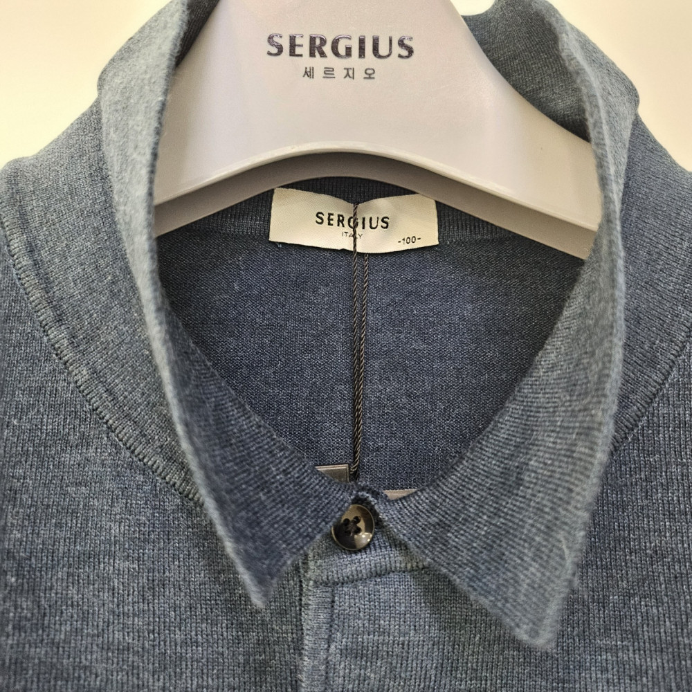 [행복한백화점][세르지오]블루 그린 모혼방 카라긴팔 니트티셔츠 sntzymf3753