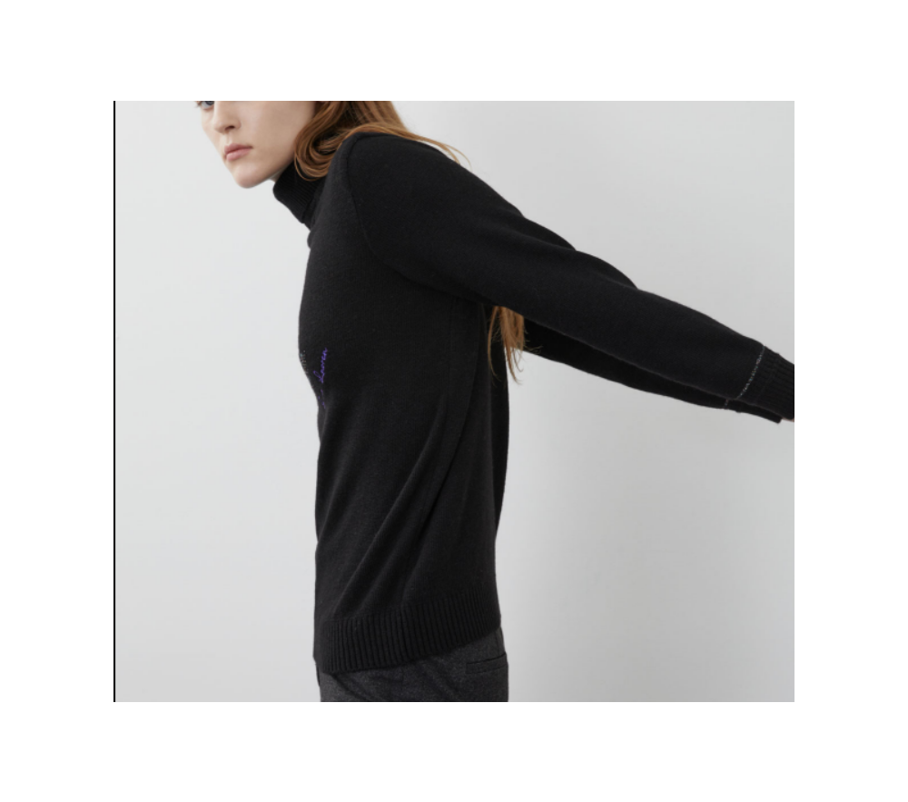 모티브가 메탈자가드 포인트 되는 터들넥 니트 탑입니다