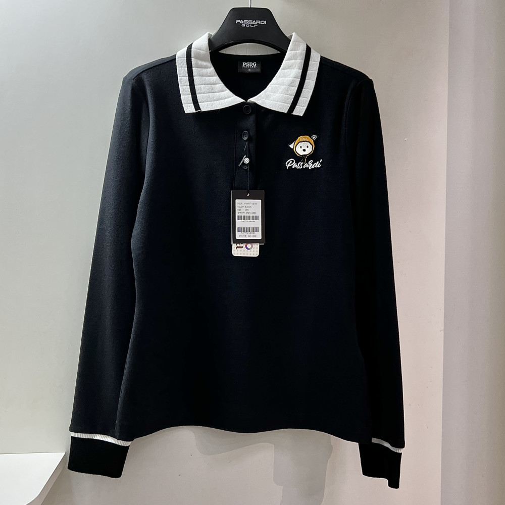 [행복한백화점][파사디]간절기 카라배색 긴팔 티셔츠 블랙 여성 P24FTT121M