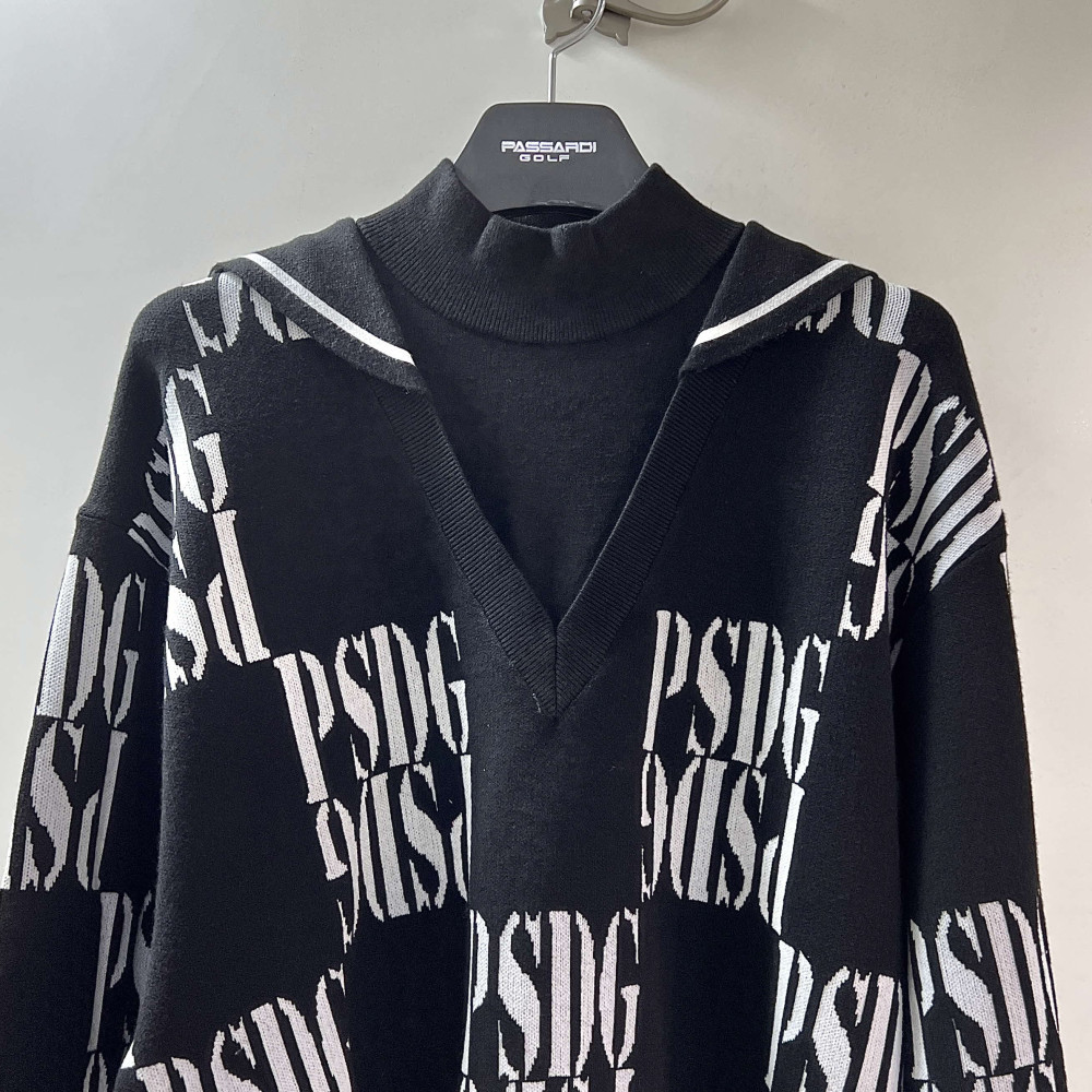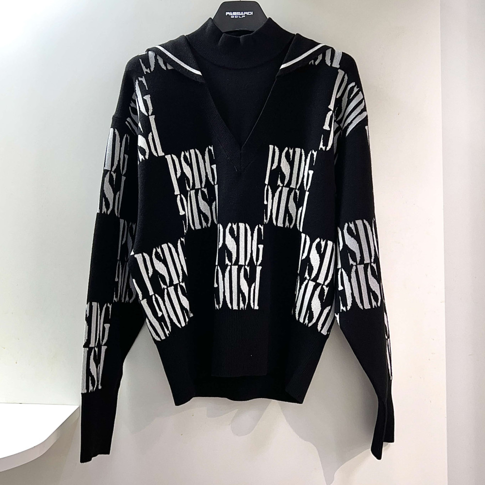 [행복한백화점][파사디]로고프린트 세일러카라 반목 니트 블랙 여성 P24FKP317M
