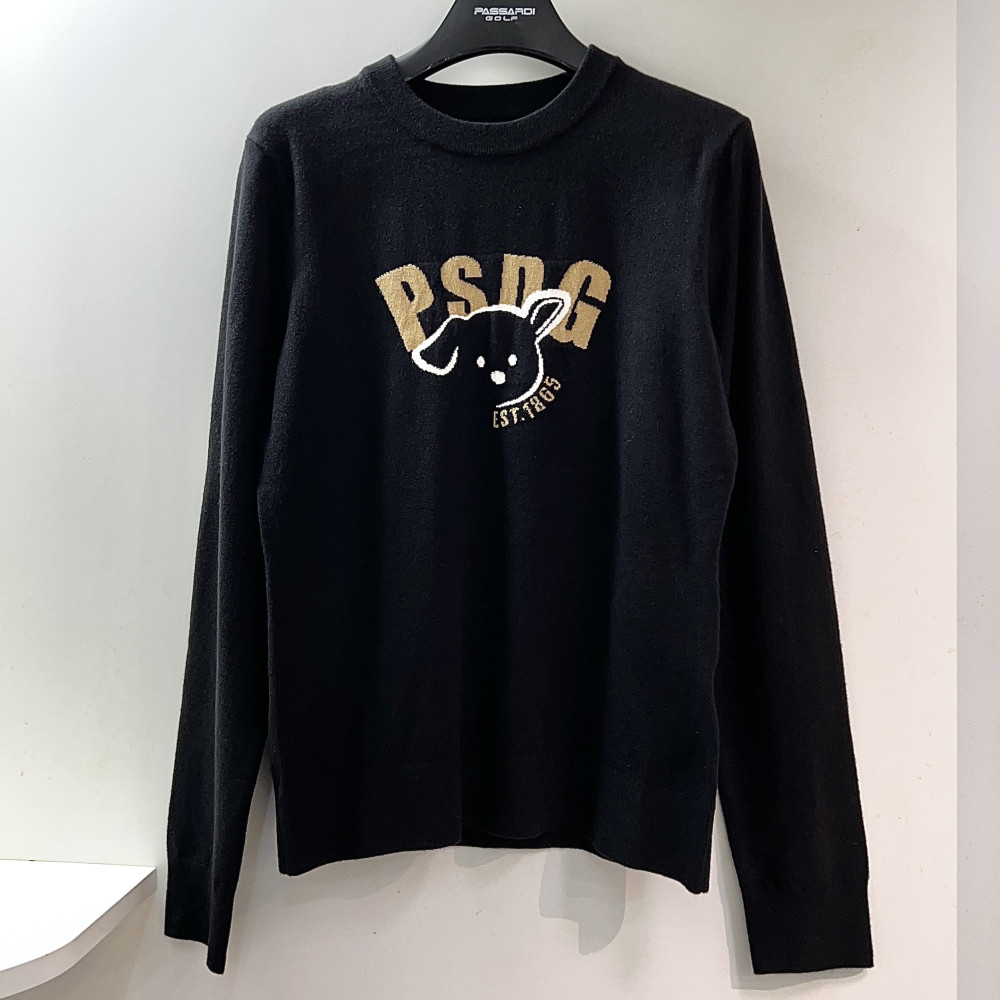 [행복한백화점][파사디]로고 인타샤 라운드넥 긴팔 니트 블랙 여성 P24FKP311M