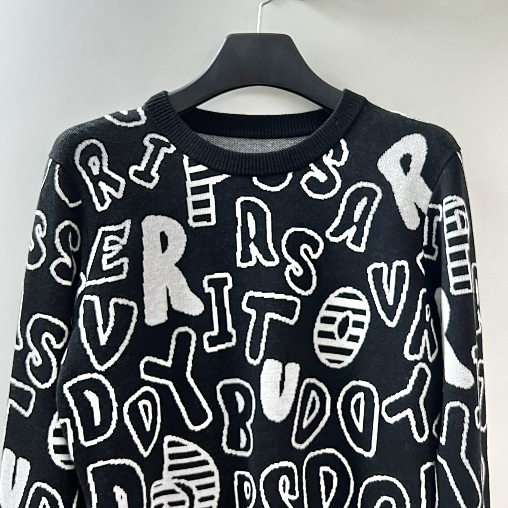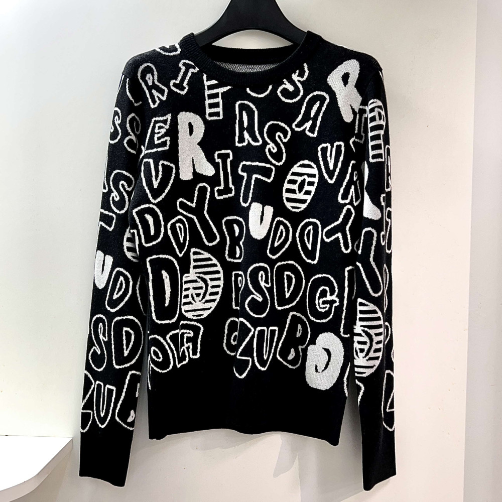 [행복한백화점][파사디]간절기 영문 로고 패턴 라운드 니트 블랙 여성 P24FKP315M