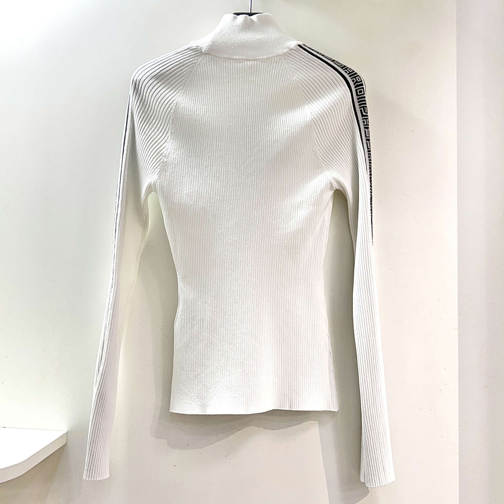 [행복한백화점][파사디]래글런 로고 자카드 모크넥 골지 니트 티셔츠 화이트 여성 P24FKP313S