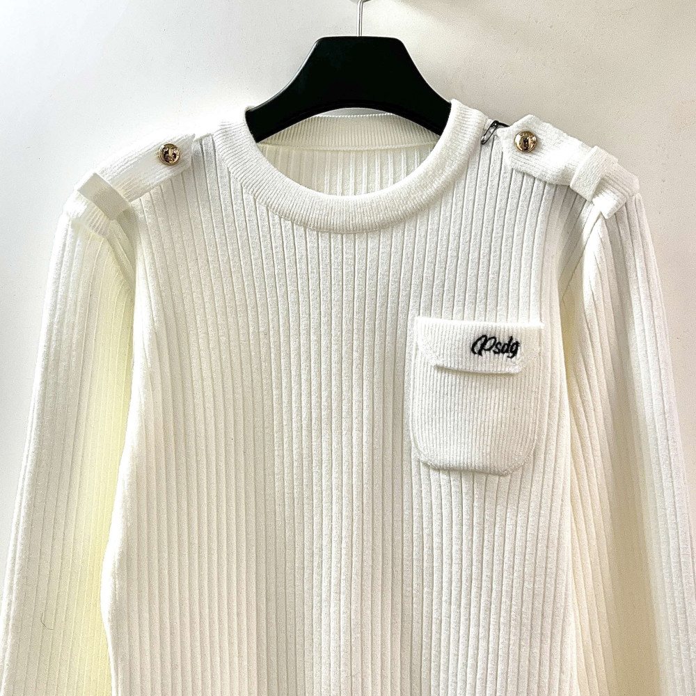 [행복한백화점][파사디]어깨 단추포인트 간절기 라운드 니트 화이트 여성 간절기 스웨터 P24FKP319M