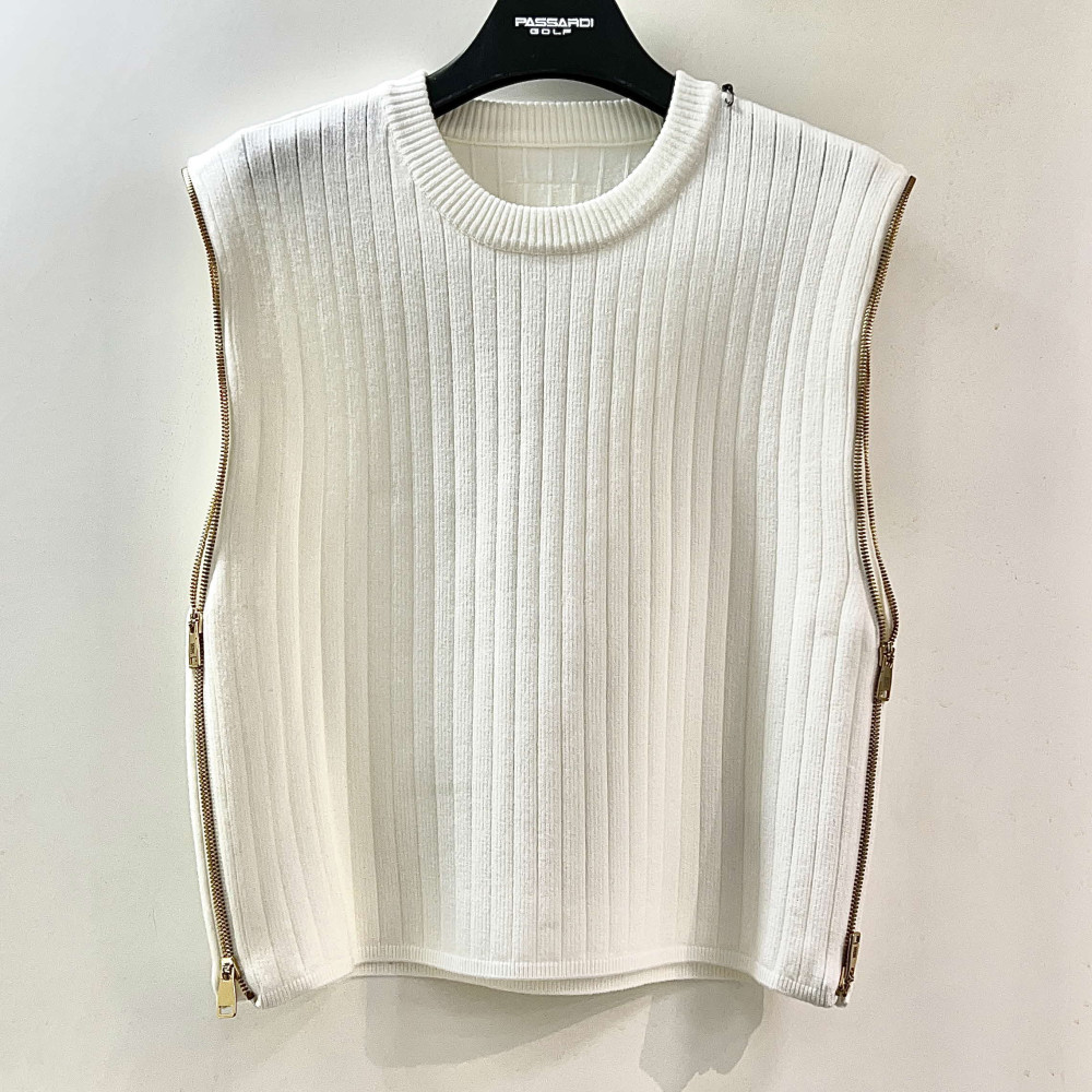 [행복한백화점][파사디]사이드 지퍼장식 니트 베스트 화이트 여성 조끼 P24FKV343X