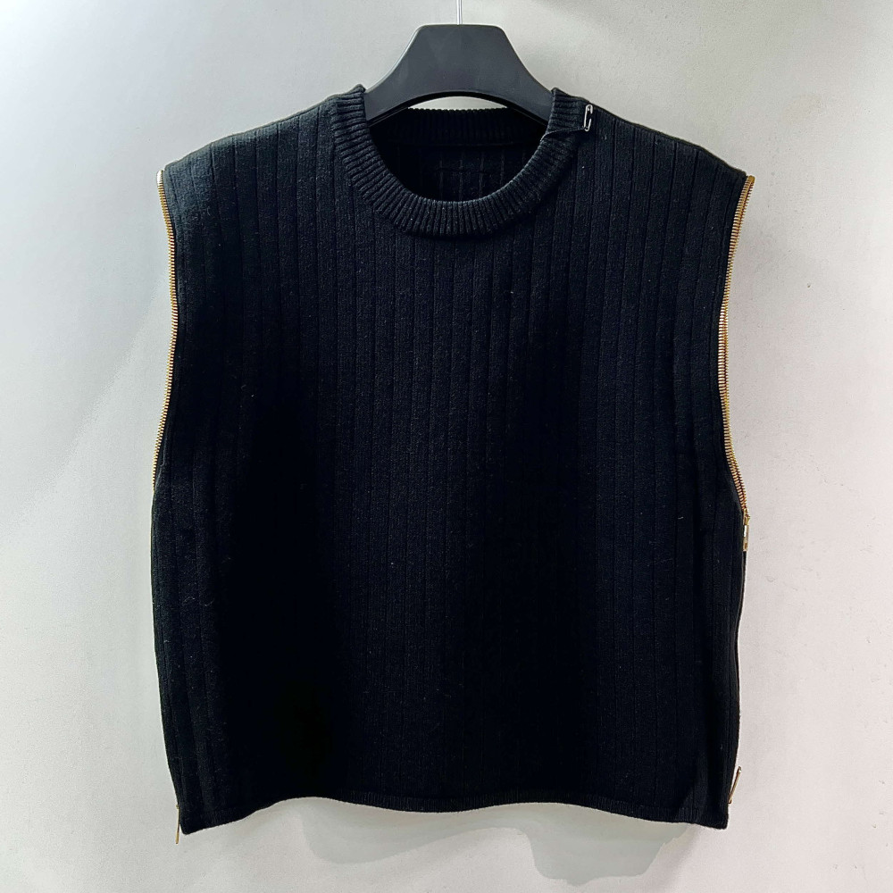 [행복한백화점][파사디]사이드 지퍼장식 니트 베스트 블랙 여성 조끼 P24FKV343X