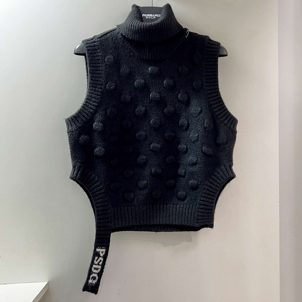 [행복한백화점][파사디]폼폼 하이넥 니트 베스트 블랙 여성 조끼 P24FKV342M