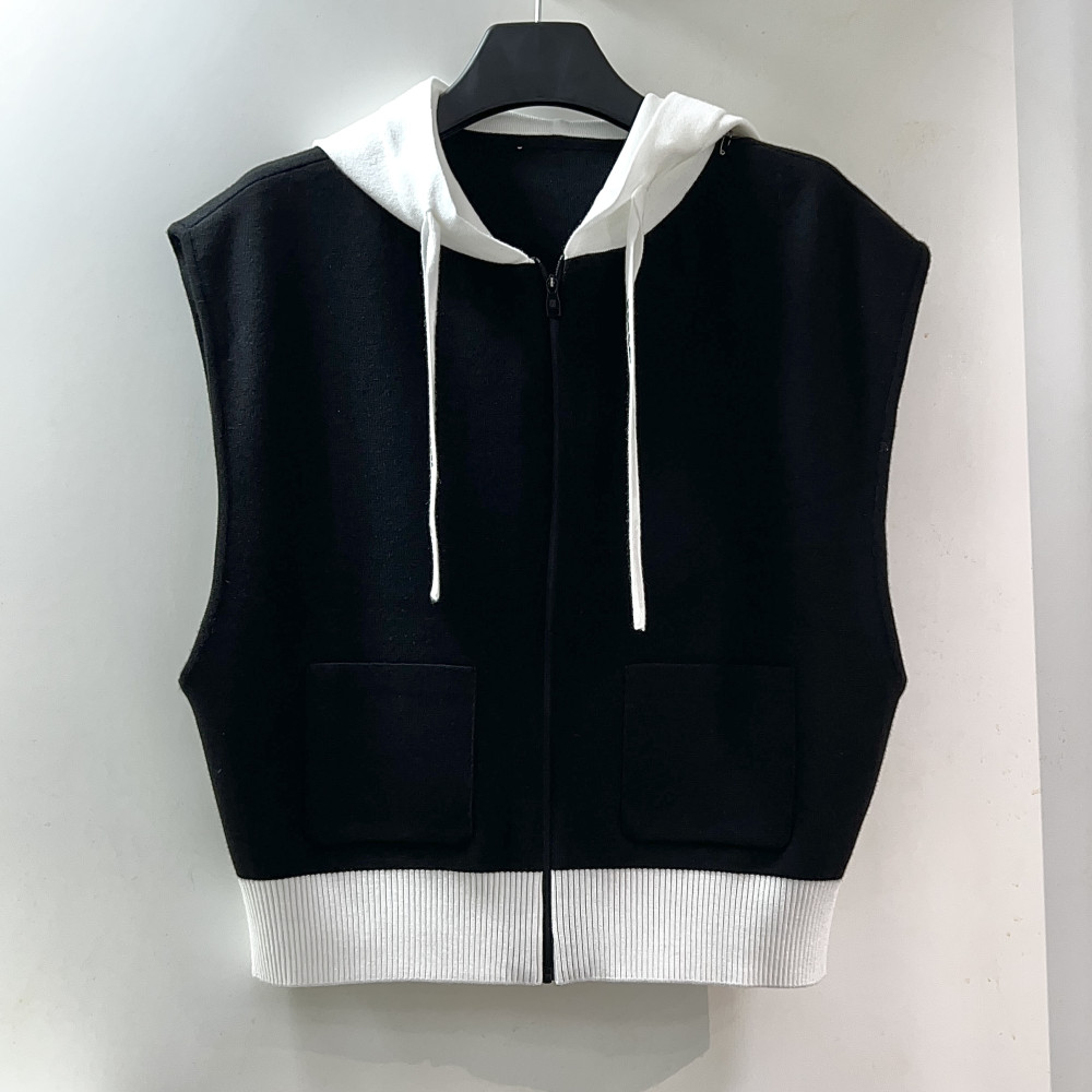 [행복한백화점][파사디]간절기 후드 니트 풀집업 베스트 블랙 여성 조끼 P24FKV341S >