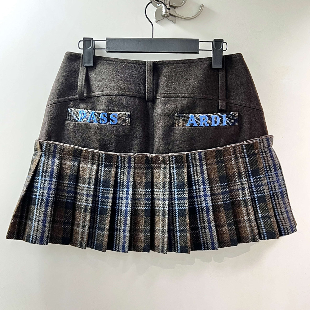 [행복한백화점][파사디]오비변형 체크 주름 스커트 다크브라운 여성 간절기 치마 P24FSK533M