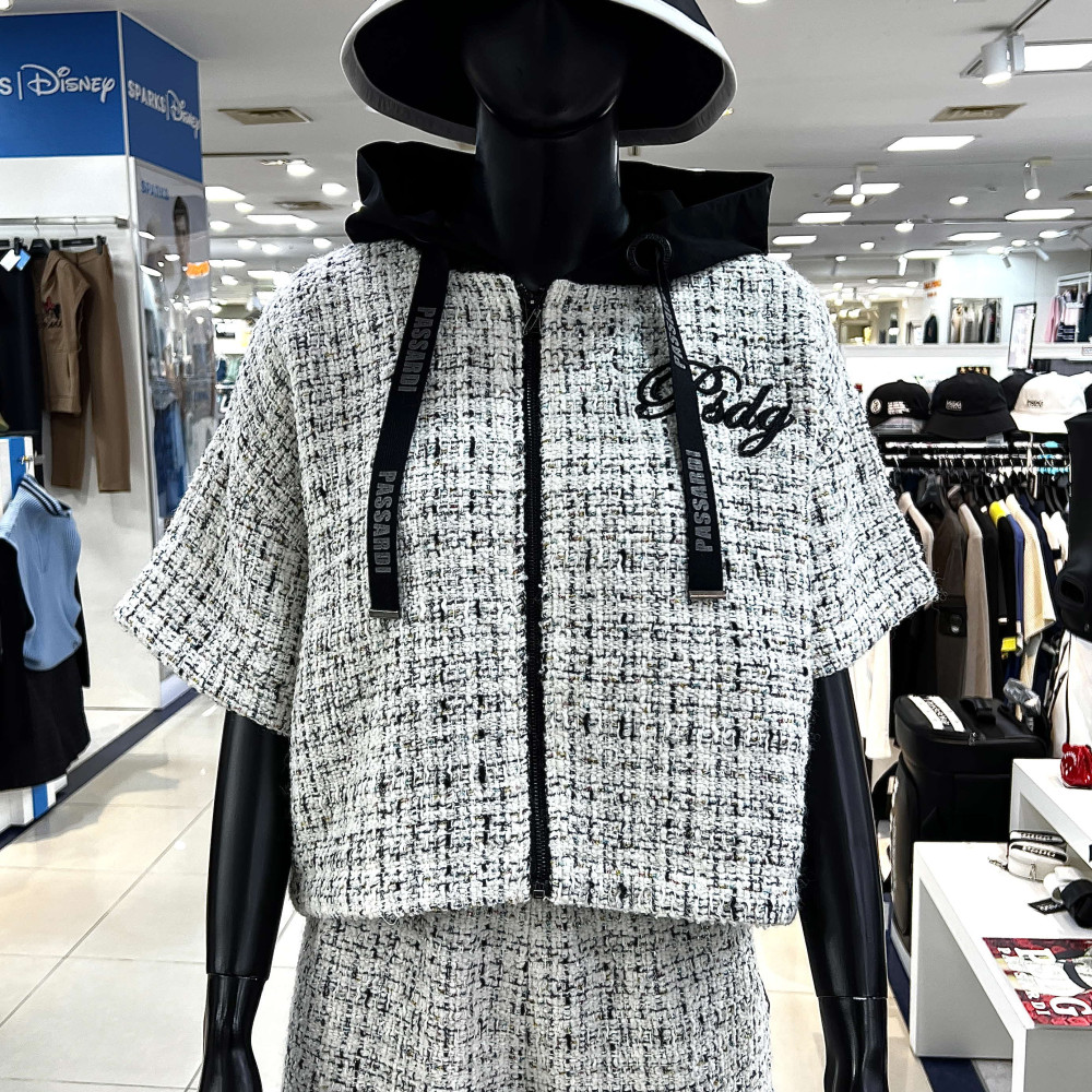 [행복한백화점][파사디]간절기 5부소매 후드 집업 트위드 점퍼 자켓 화이트 여성 P24FTJ143S