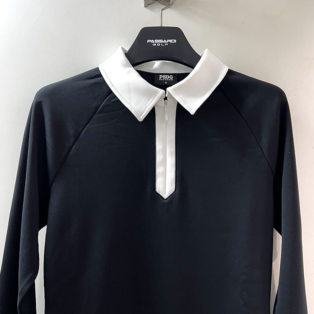 [행복한백화점][파사디]간절기 카라배색 긴팔 티셔츠 블랙 여성 P24FTY131X