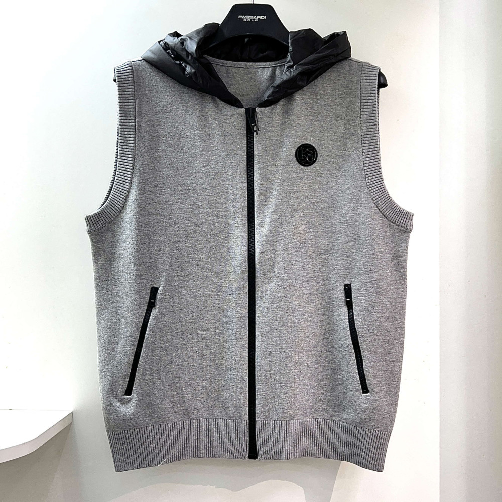 [행복한백화점][파사디]후드 우븐패치 니트 집업 베스트 멜란지그레이 남성 조끼 Q24FKV232X >