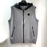 [행복한백화점][파사디]후드 우븐패치 니트 집업 베스트 멜란지그레이 남성 조끼 Q24FKV232X