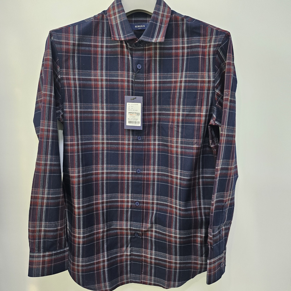 [행복한백화점][세르지오]네이비 체크 긴팔 남방