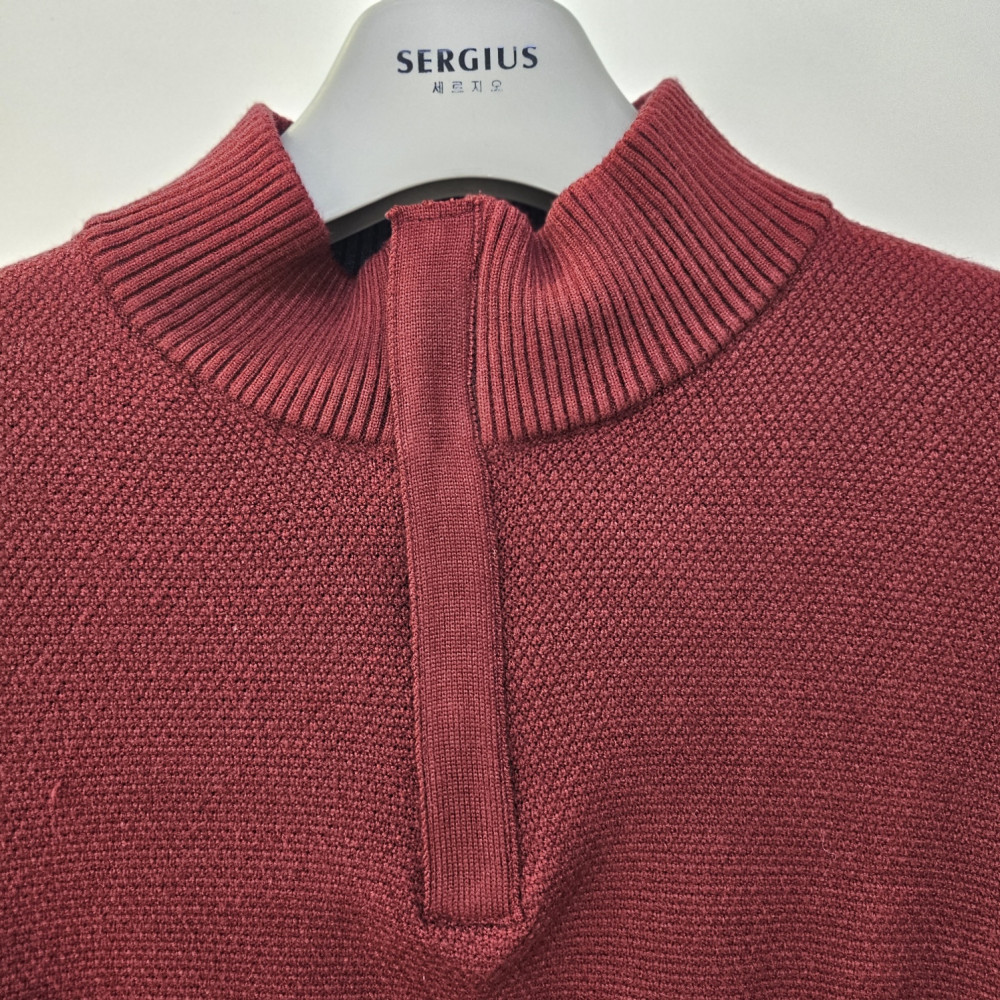 [행복한백화점][세르지오]버건디 단색 솔리드 반집업 니트티셔츠 sntjbmf4857a