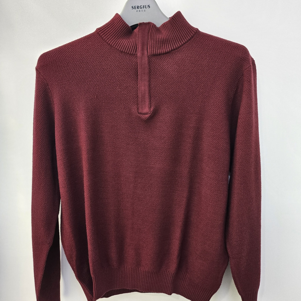 [행복한백화점][세르지오]버건디 단색 솔리드 반집업 니트티셔츠 sntjbmf4857a >