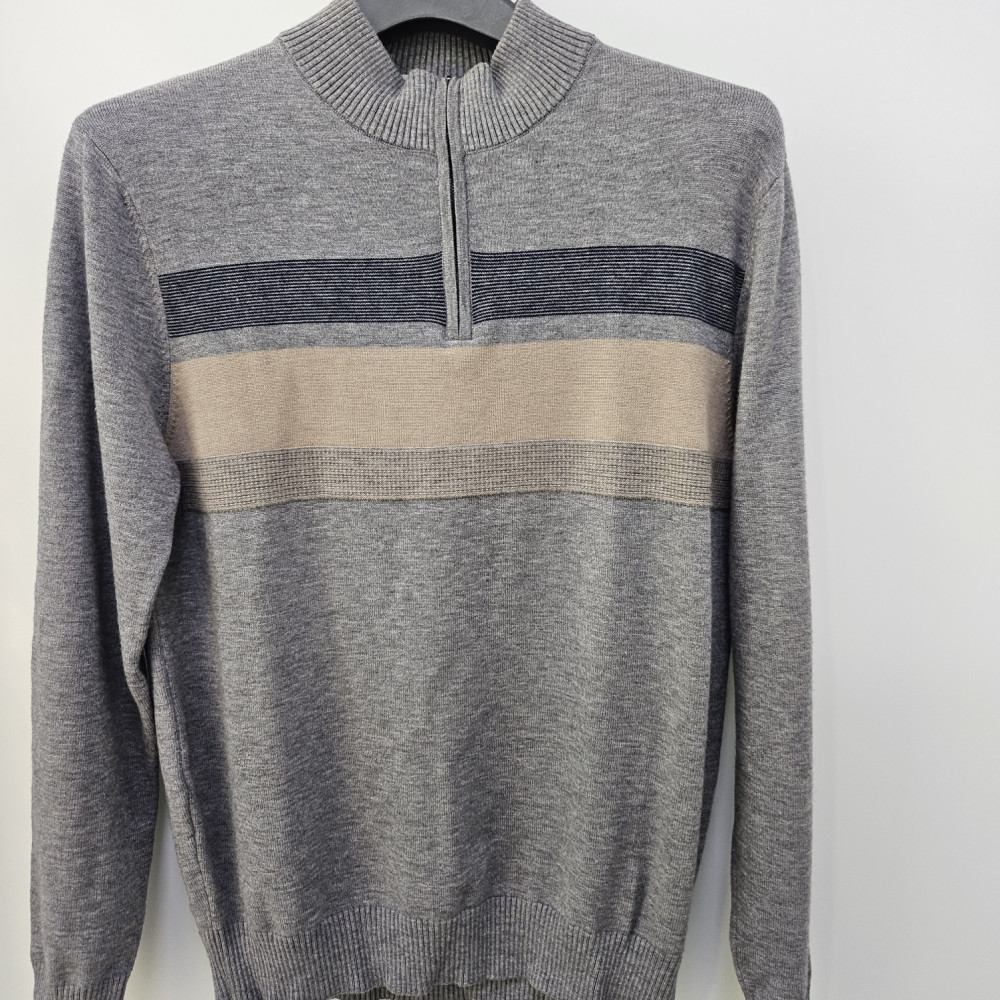 [행복한백화점][세르지오]단가라 그레이 반집업 니트티셔츠 sntjbmf4864