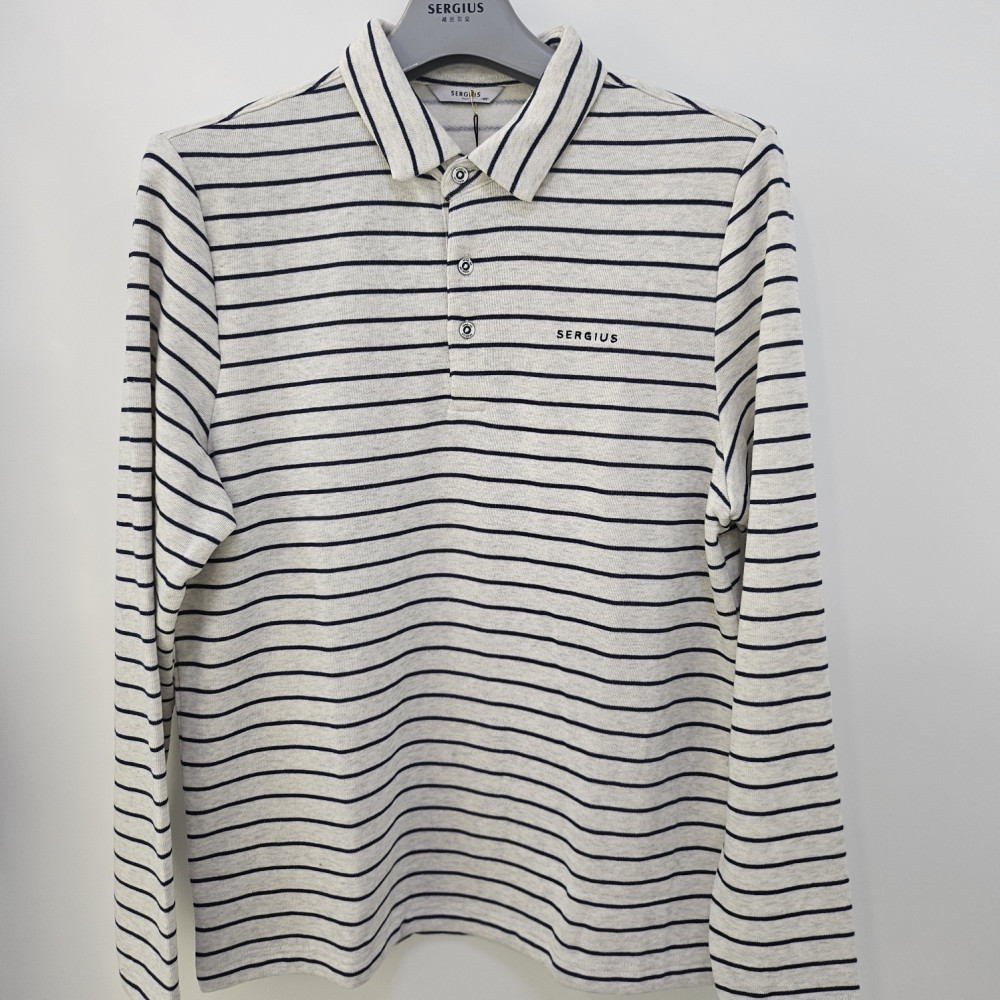 [행복한백화점][세르지오]스트라이프 아이보리 카라 티셔츠 stsmgmf4541