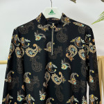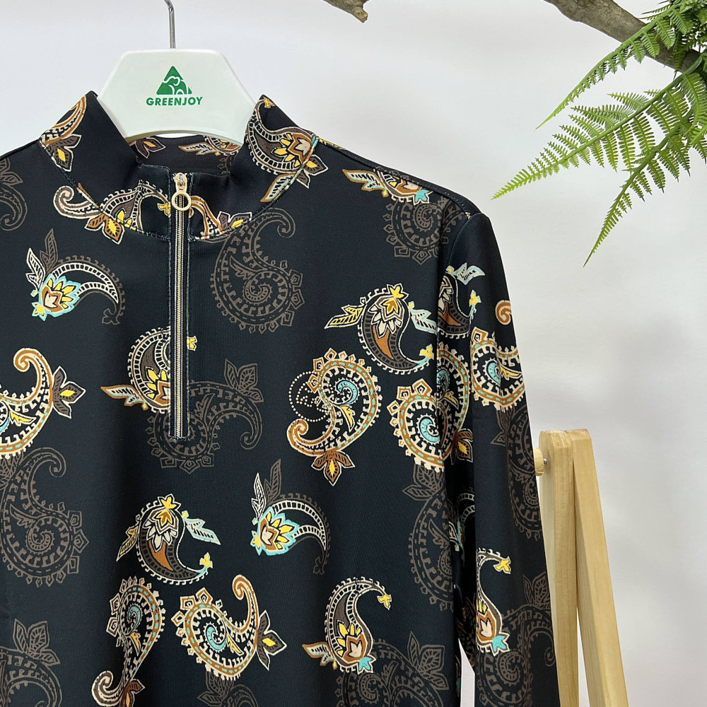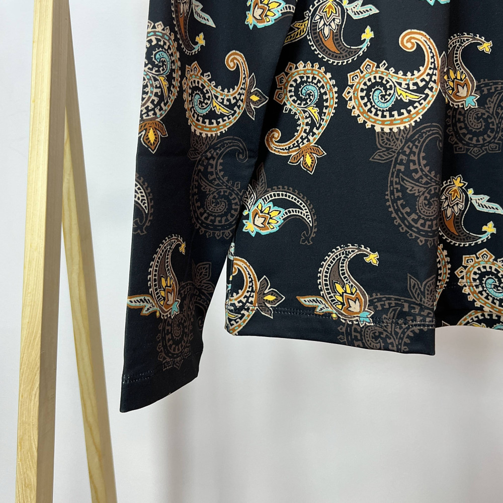 페이즐리 패턴이 더해져 멋스러운 느낌을 주는 여성 반지퍼 긴팔 티셔츠입니다.
