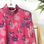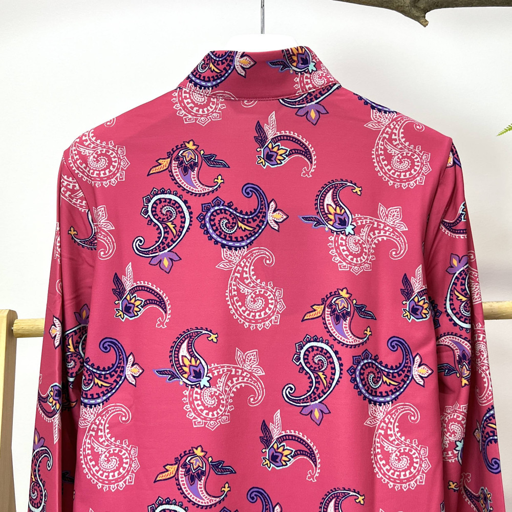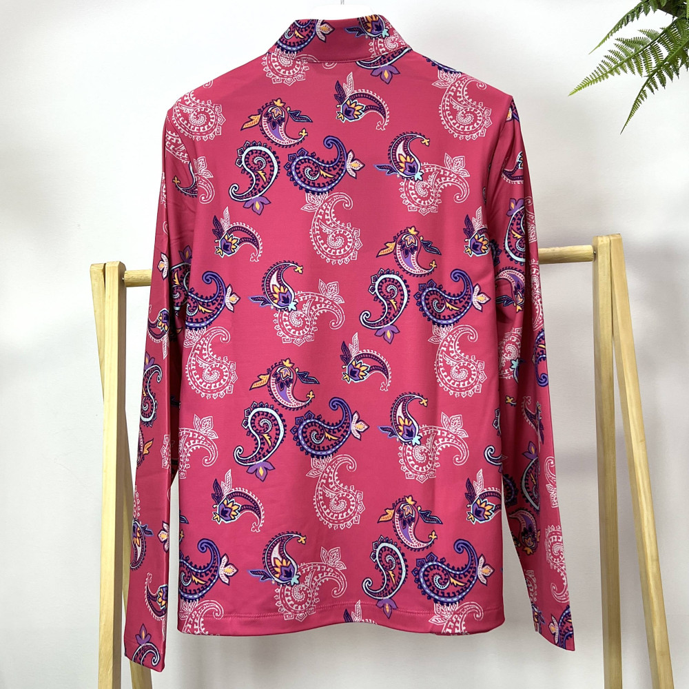 페이즐리 패턴이 더해져 멋스러운 느낌을 주는 여성 반지퍼 긴팔 티셔츠입니다.