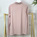 여성 긴팔 골조직 카라 티셔츠입니다.