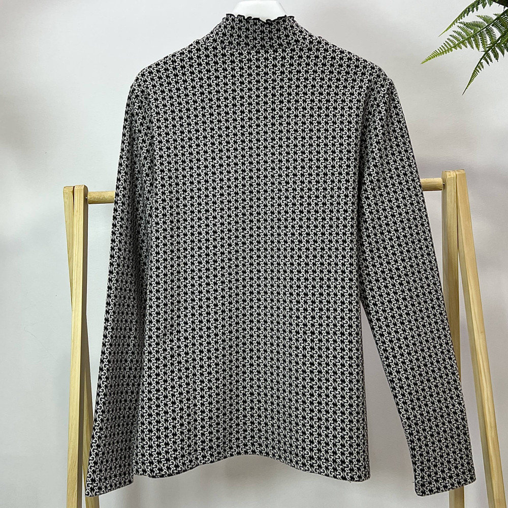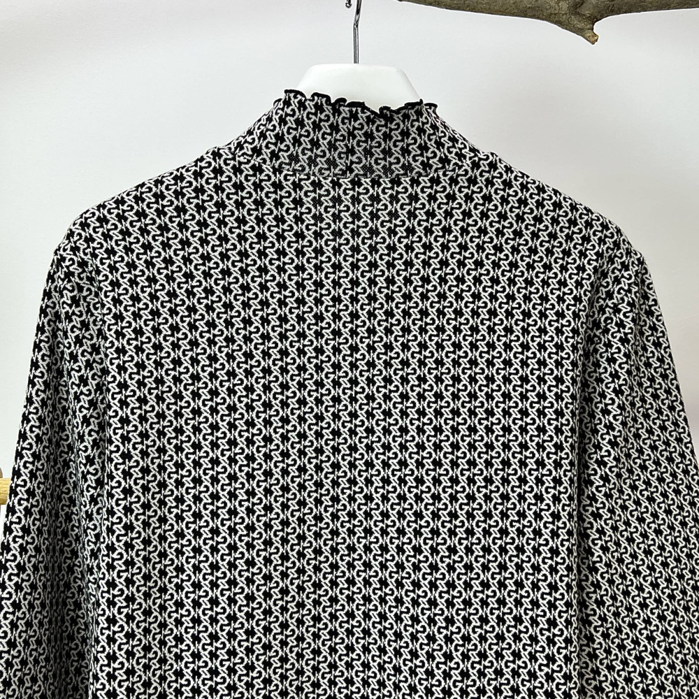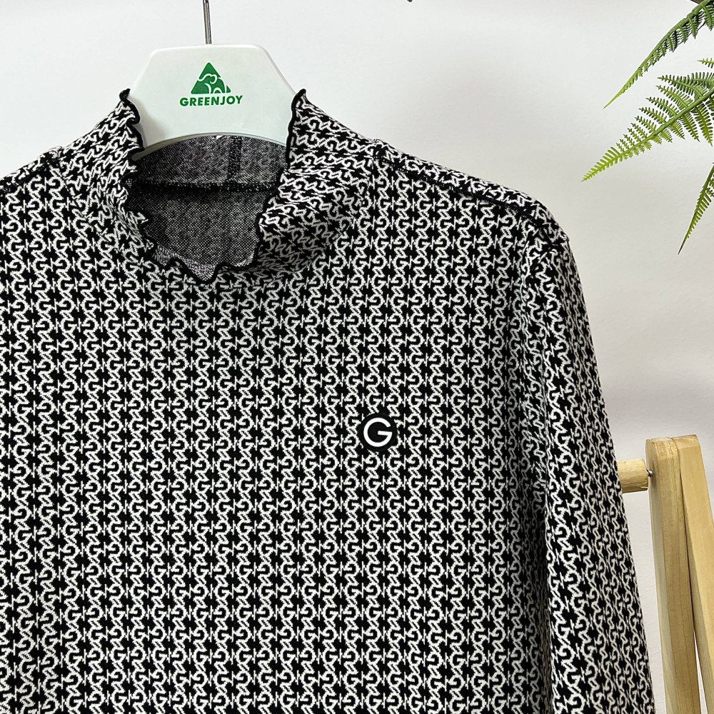 네크라인에 셔링 디테일이 더해진 여성 반목 긴팔 티셔츠입니다.
