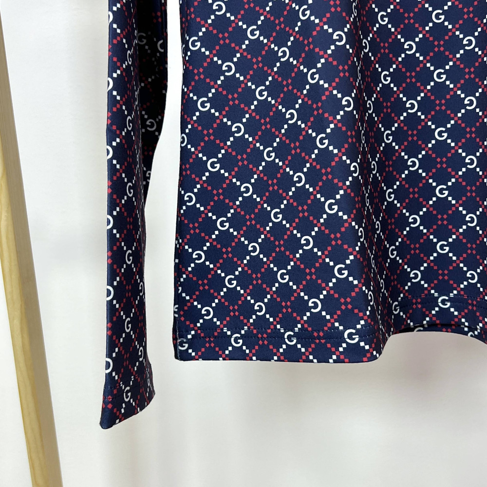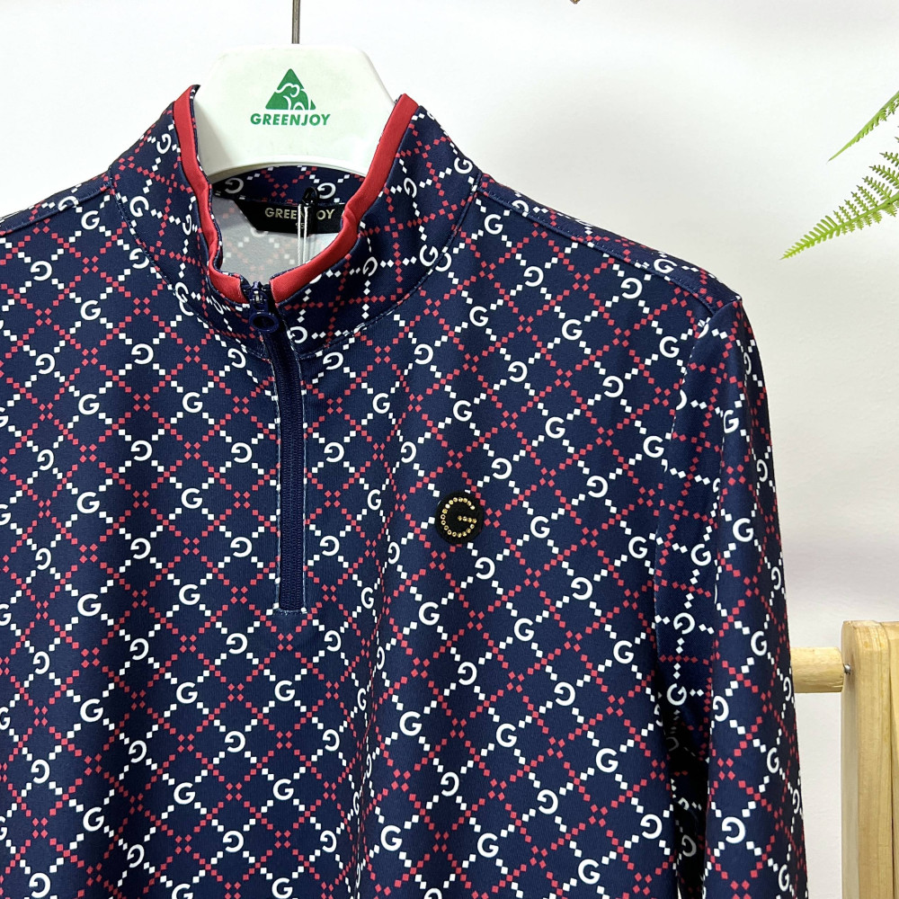전판에 G로고 패턴이 더해진 여성 긴팔 반지퍼 티셔츠입니다. 터치감이 부드러우며 착용감이 편안합니다.