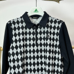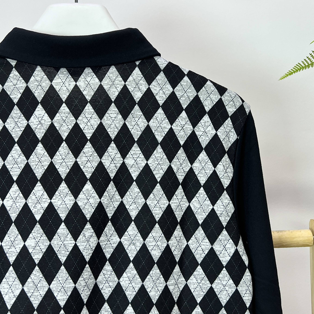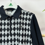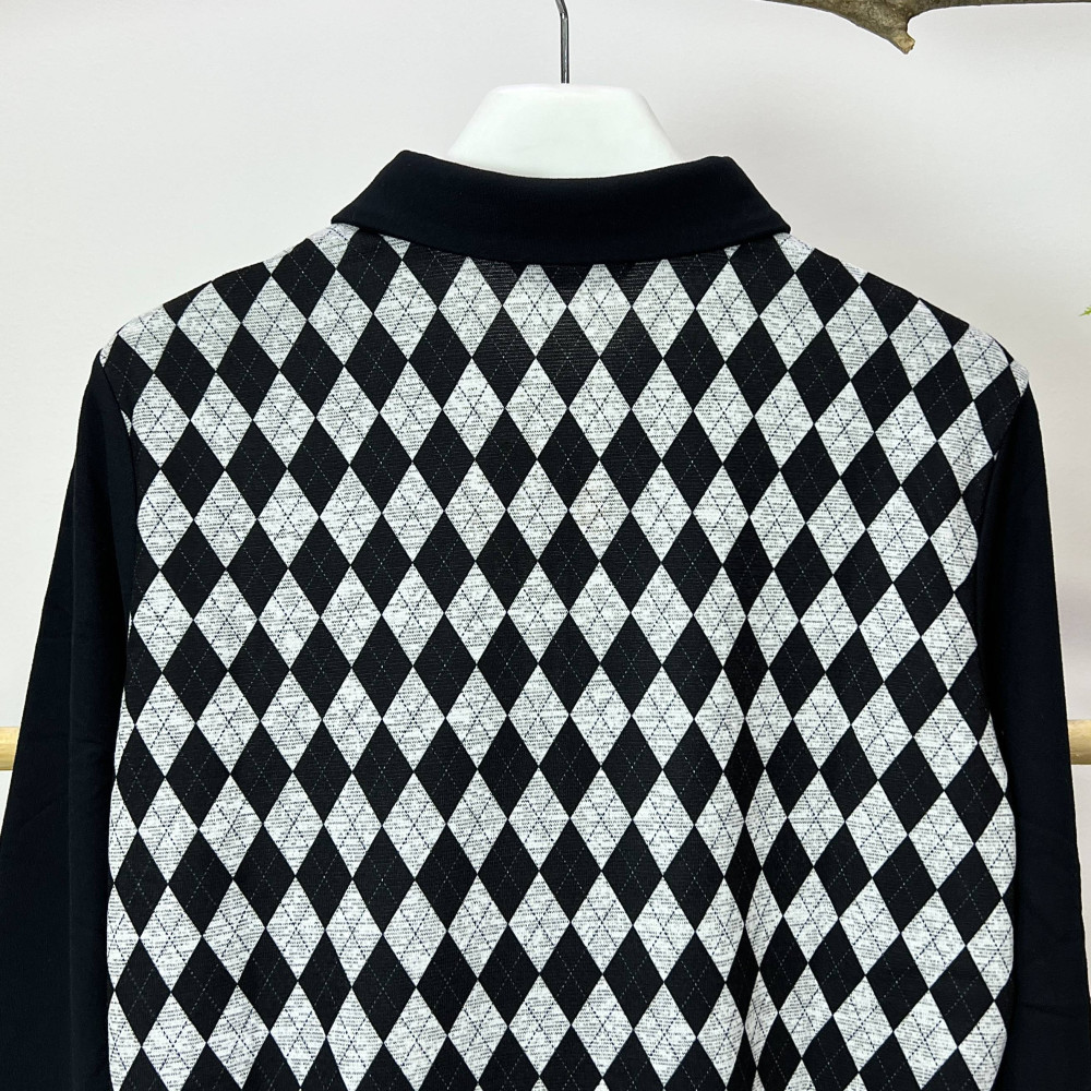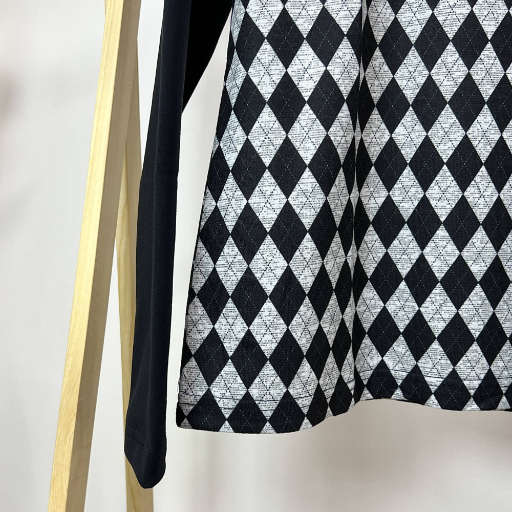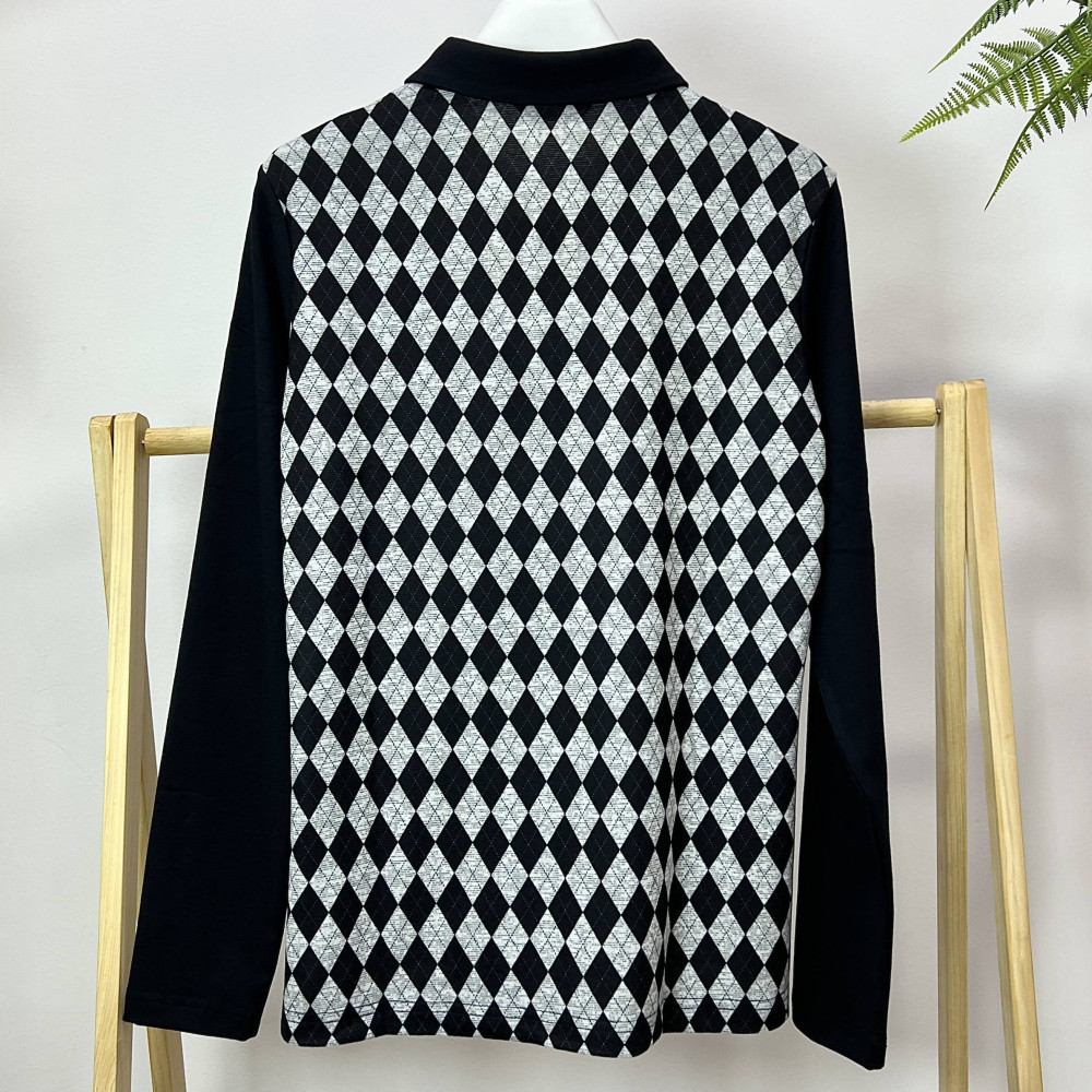 몸판 부분에 아가일 패턴이 더해진 여성 긴팔 카라 티셔츠입니다.