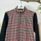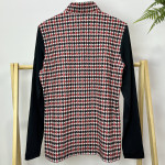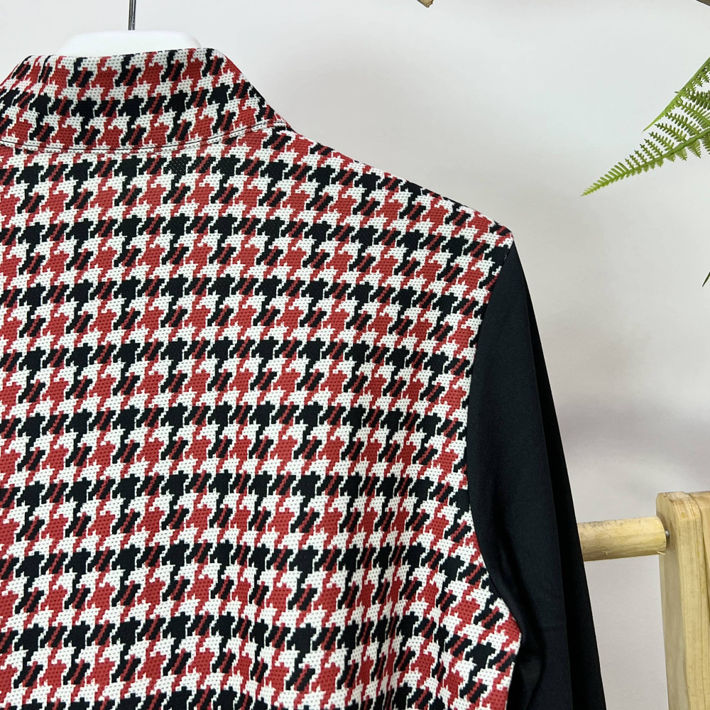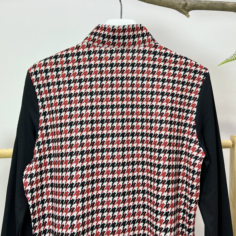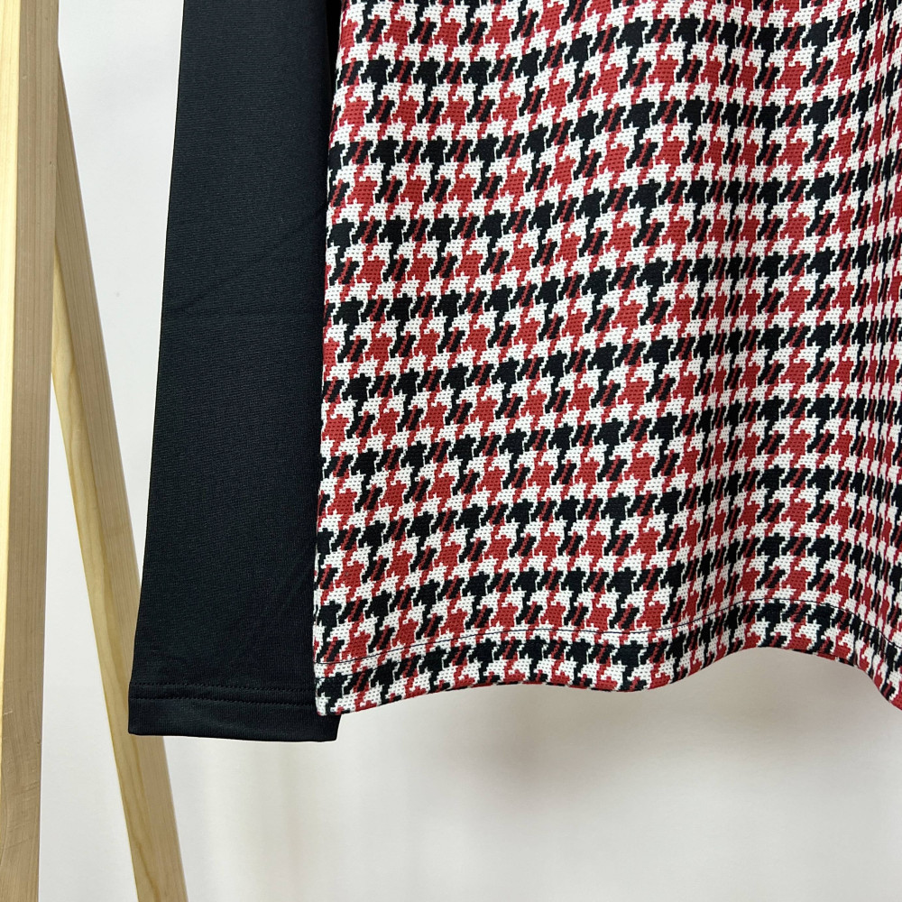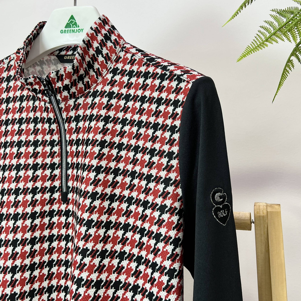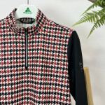 몸판 부분에 지도리 체크 패턴리 더해진 여성 반목 긴팔 반지퍼 티셔츠입니다.