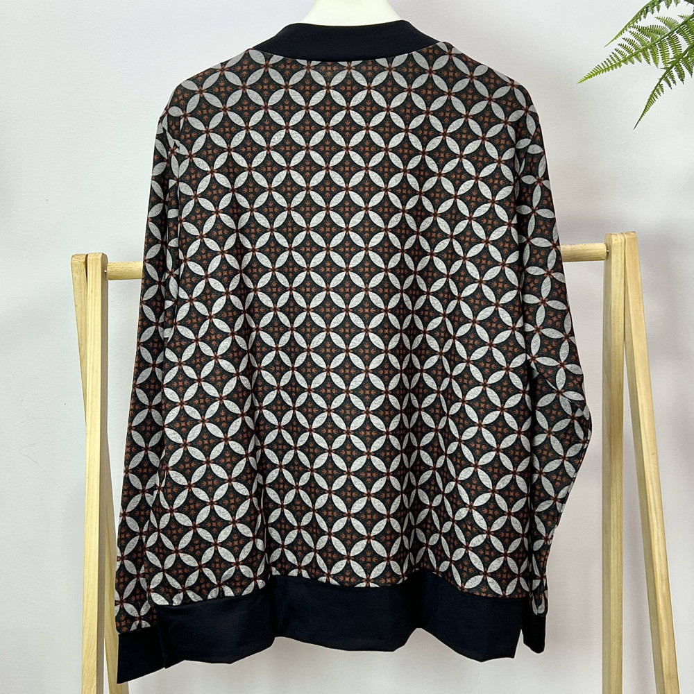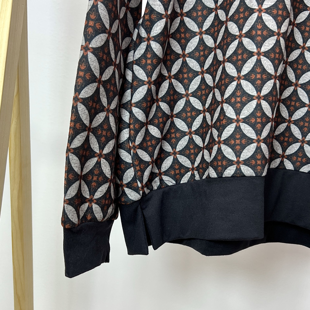 전판에 패턴이 더해진 여성 맨투맨 티셔츠입니다. 루즈핏 티셔츠로, 무게감이 가벼워 편안하게 착용하기 좋습니다.