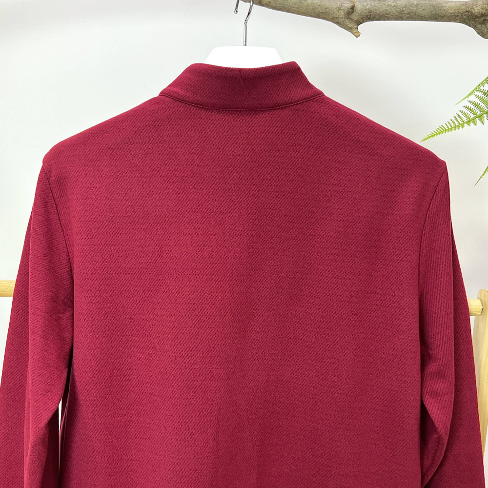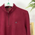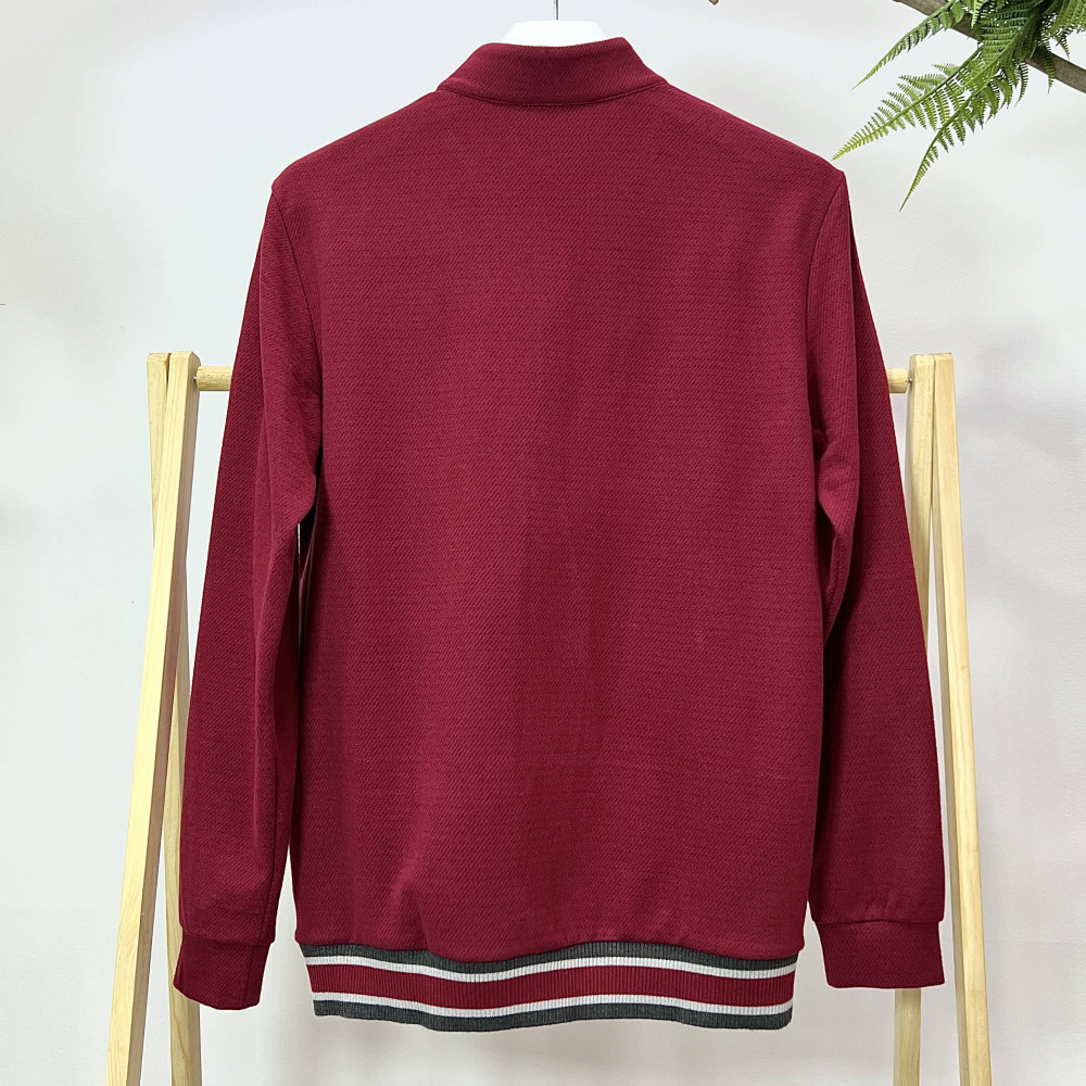 밑단 시보리에 컬러 배색 포인트를 더해준 남성 하프넥 반집업 티셔츠입니다.