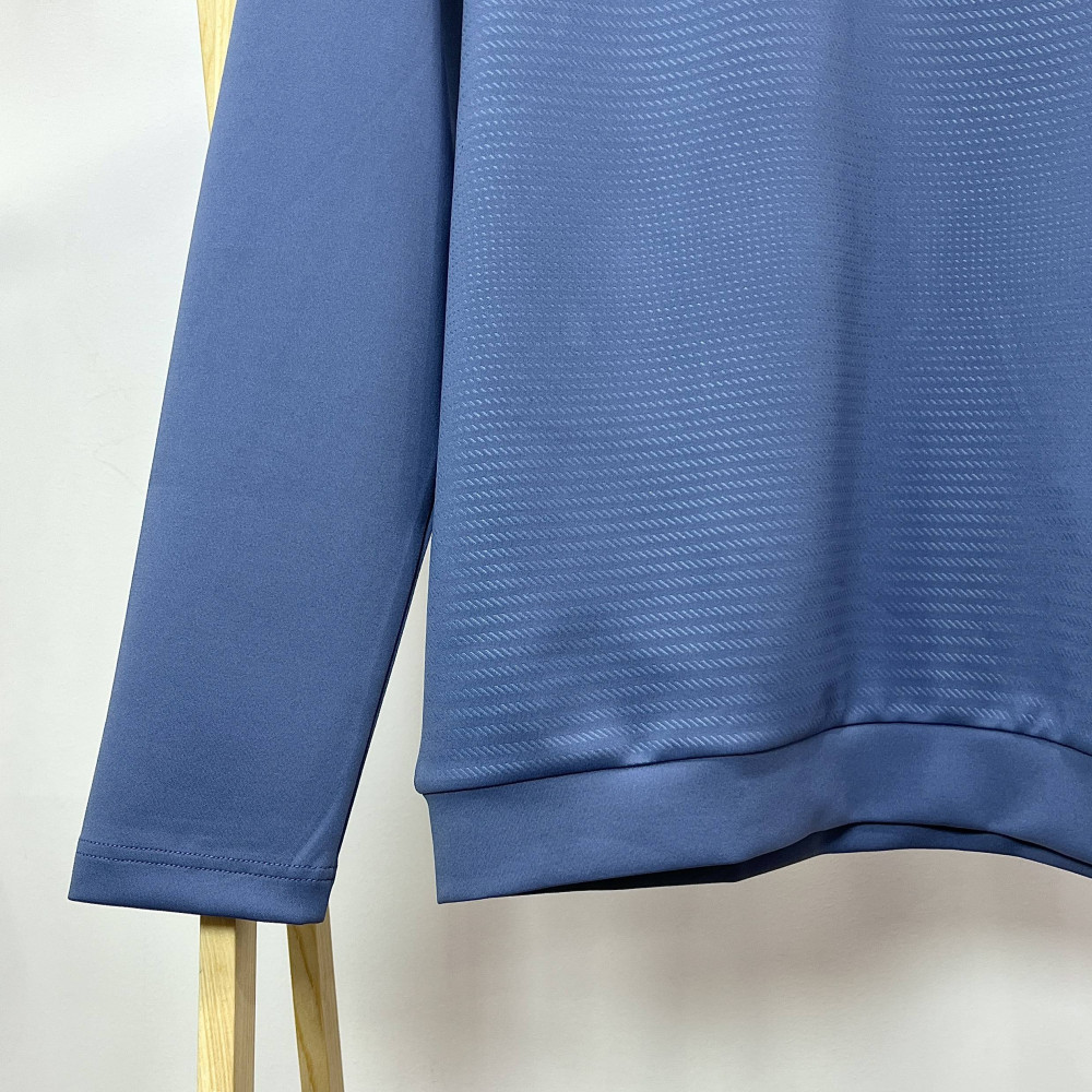 절개 라인이 더해진 남성 하프넥 반집업 긴팔 티셔츠입니다. 터치감이 부드러워 편안하게 착용하기 좋습니다.