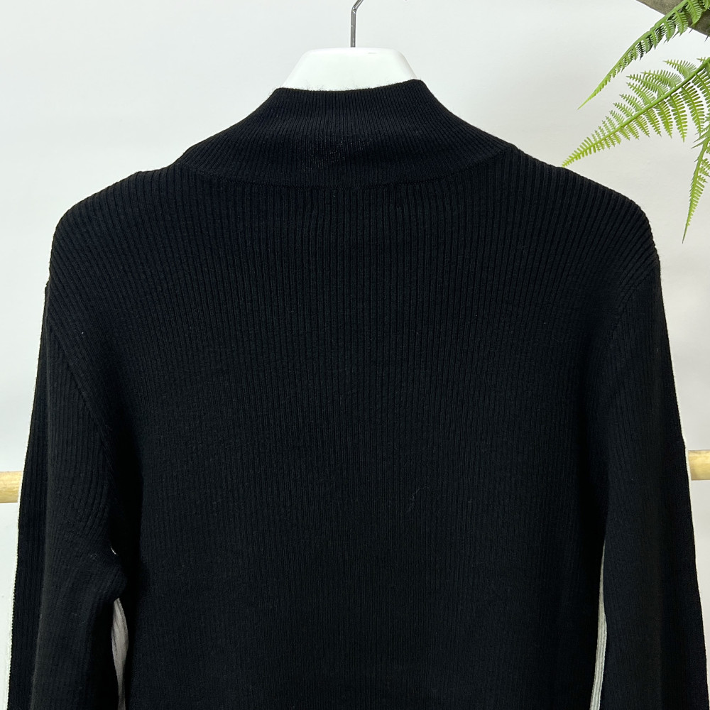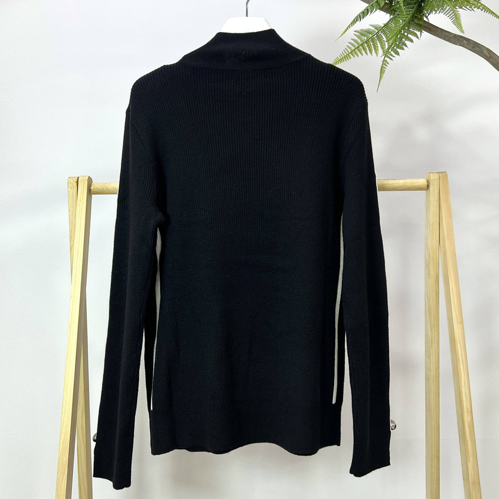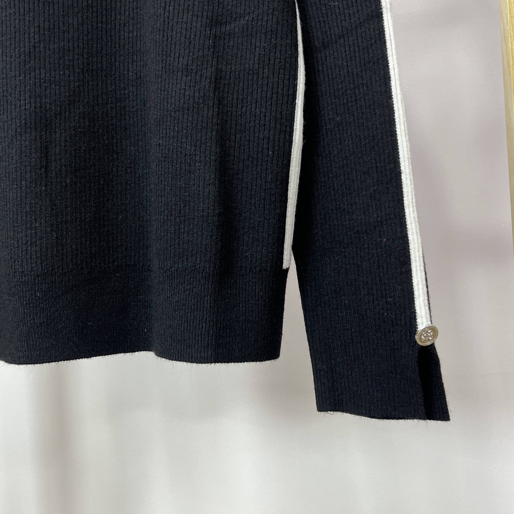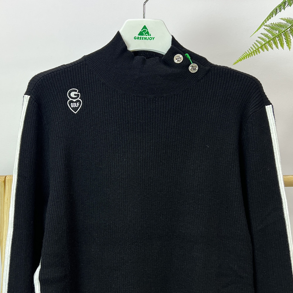 소매 라인에 컬러 배색을 더해준 여성 반목 골지 니트입니다.