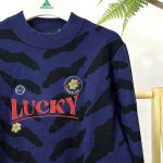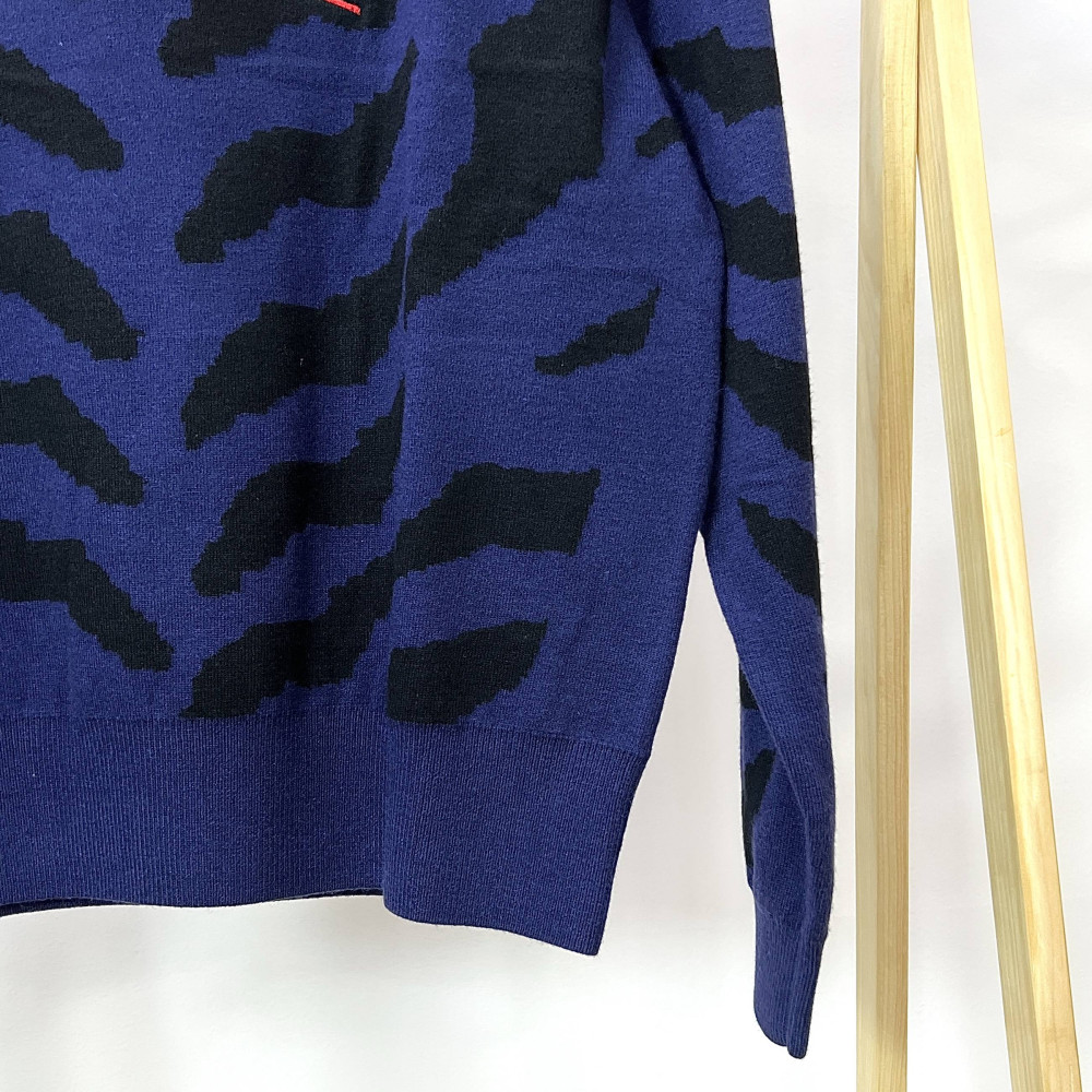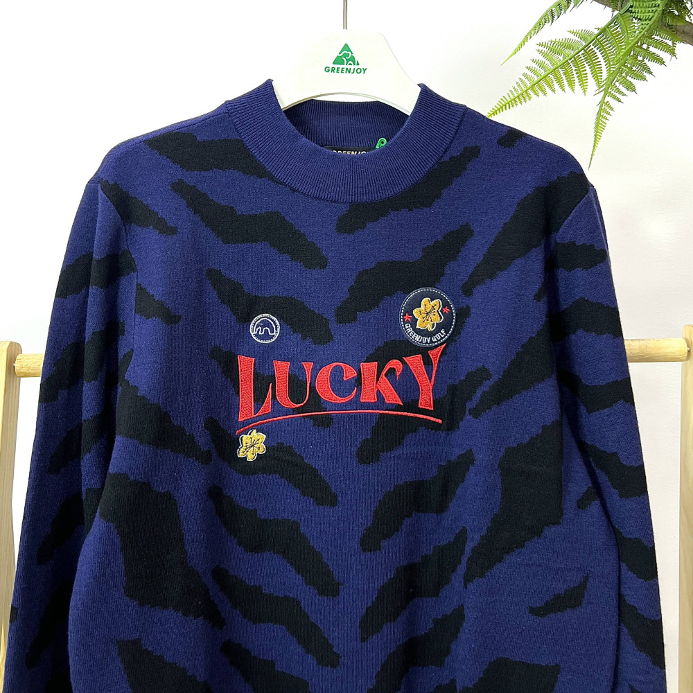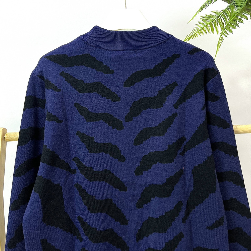 앞판에 자수 포인트를 더해준 지브라 패턴의 여성 반목 니트입니다.