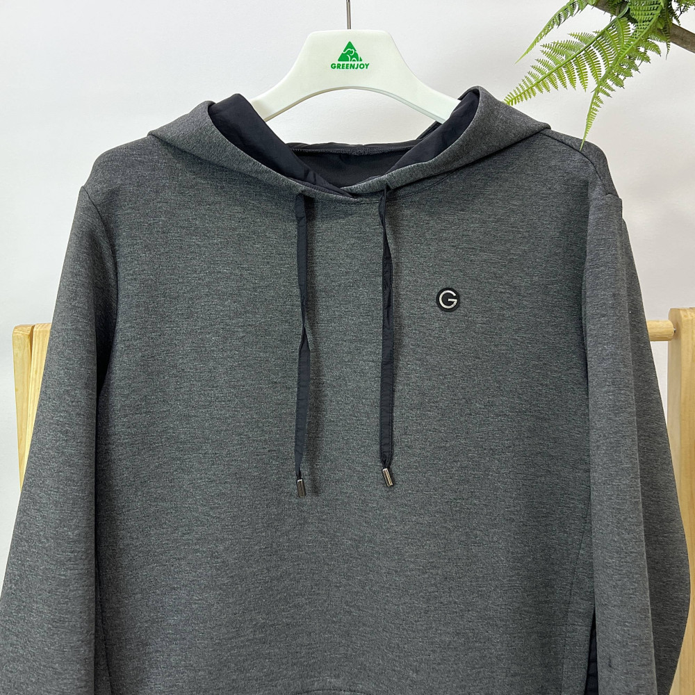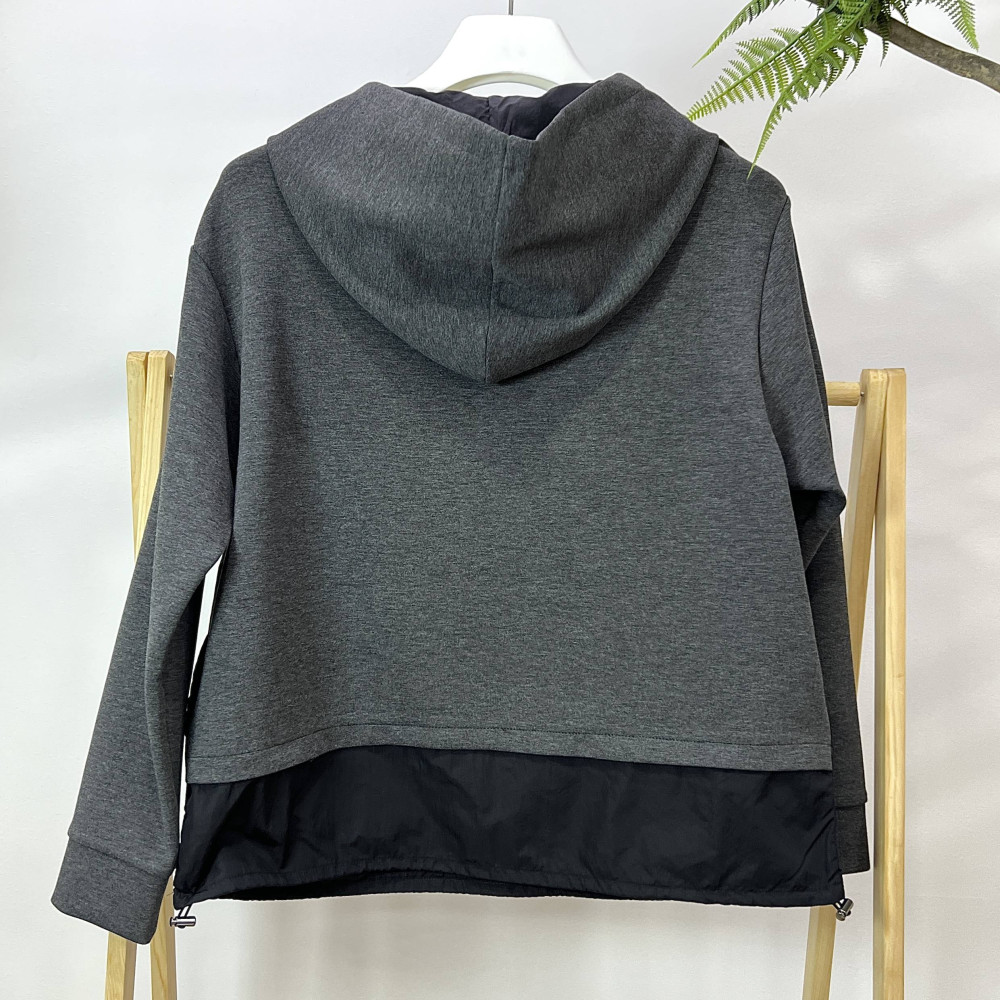 밑단에 우븐 소재 배색을 더해준 유니크한 디자인의 여성 후드 티셔츠입니다.