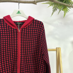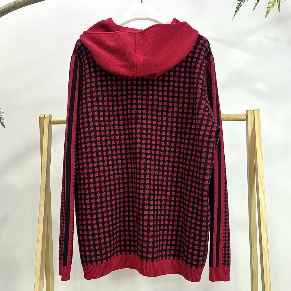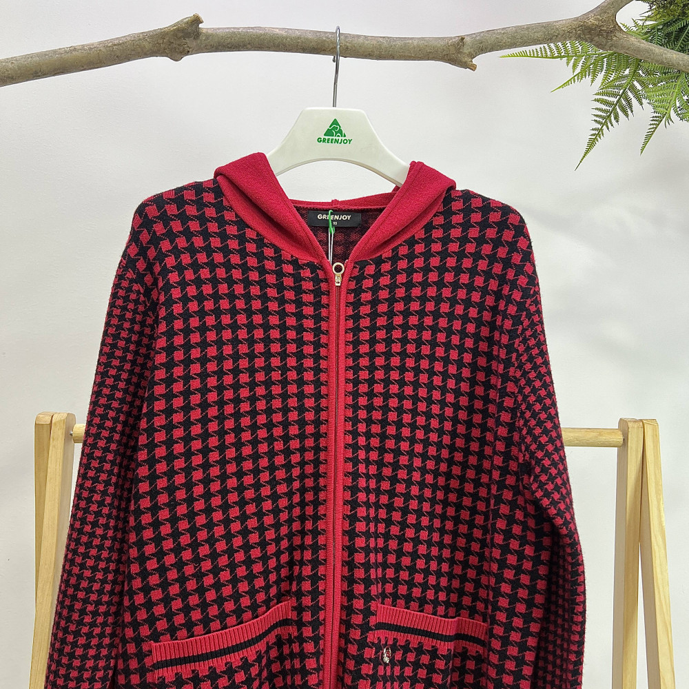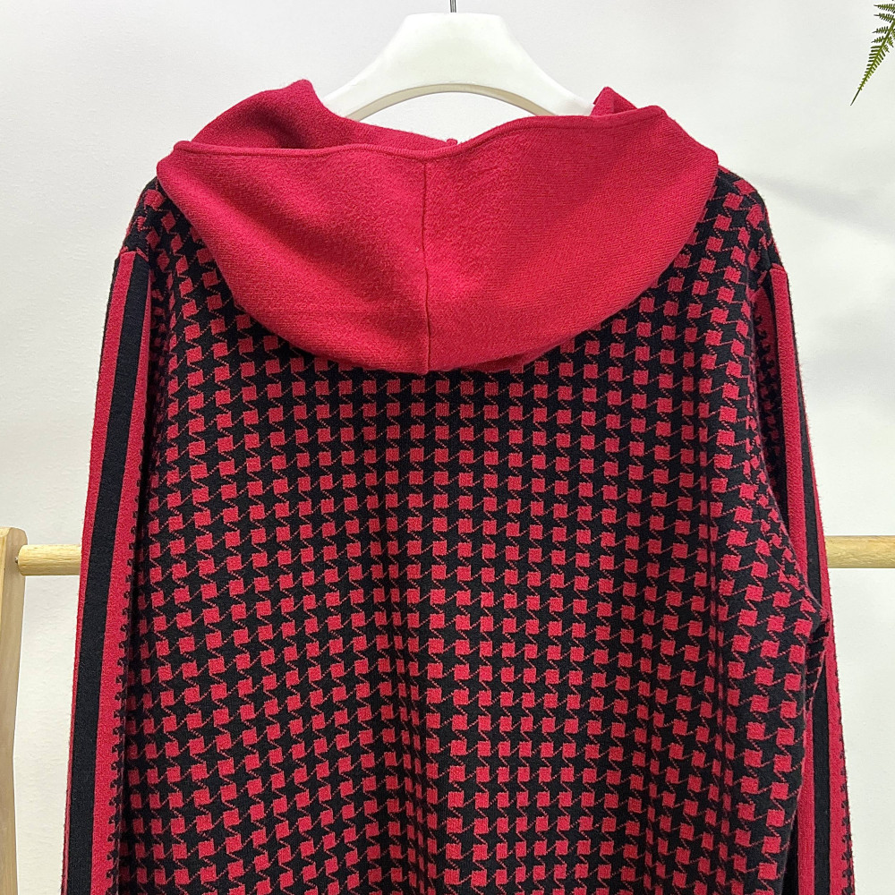 전판에 패턴이 더해진 여성 후드 집업 니트 가디건입니다.
