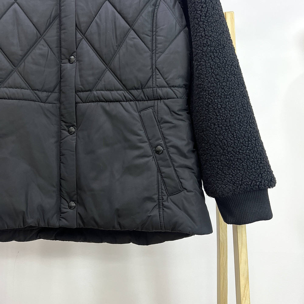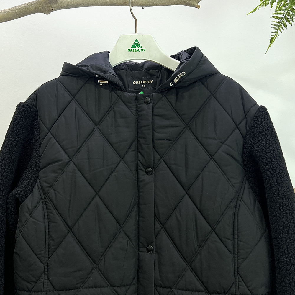 소매 부분에 부클 배색이 더해진 여성 패딩 점퍼입니다. 겨울 시즌에 편안하고 따뜻하게 착용하기 좋은 후드 점퍼로, 부클 소재가 더욱 따뜻하고 포근해보이는 느낌을 줍니다.