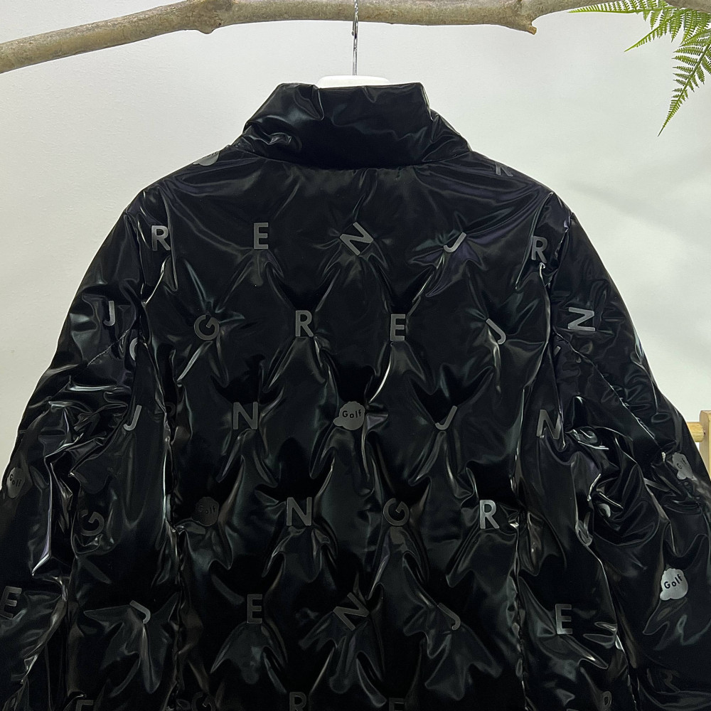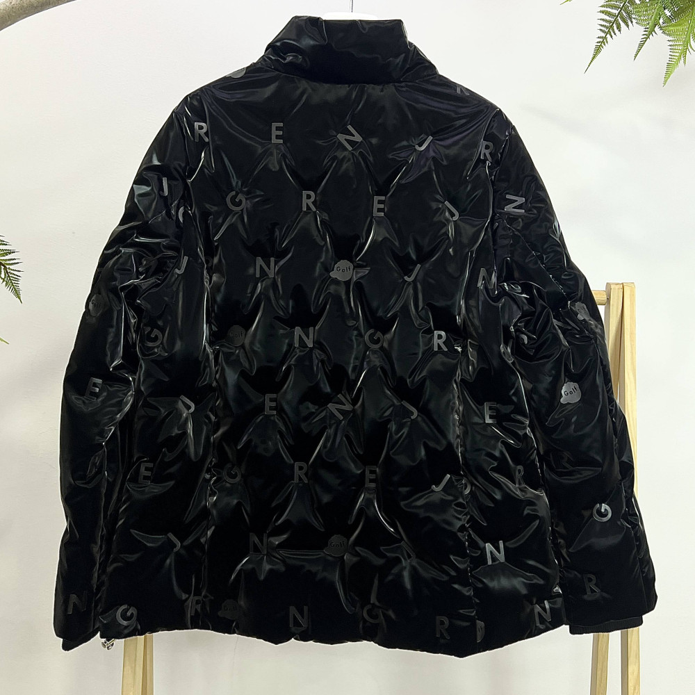 전판에 로고 알파벳이 포인트로 더해진 여성 유광 덕다운 점퍼입니다. 스타일리쉬한 느낌을 주는 디자인입니다.