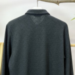 헤링본 패턴이 전판에 은은하게 더해진 남성 긴팔 카라 티셔츠입니다.