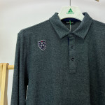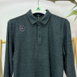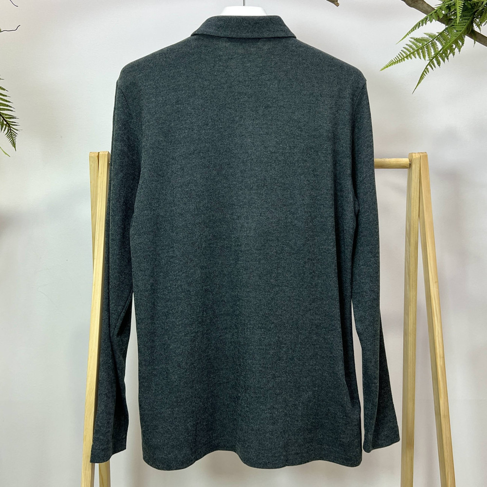 가슴 부분에 패치가 포인트로 더해진 남성 긴팔 카라 티셔츠입니다.